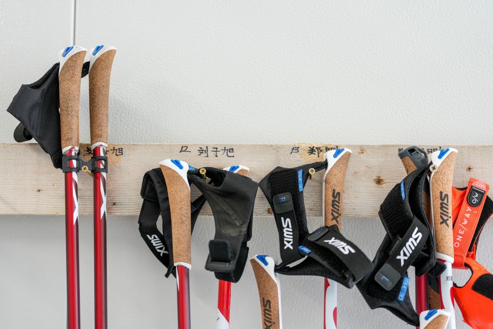 这是3月9日在泰塞罗越野滑雪中心拍摄的中国残奥运动员的雪杖。新华社记者 连振 摄