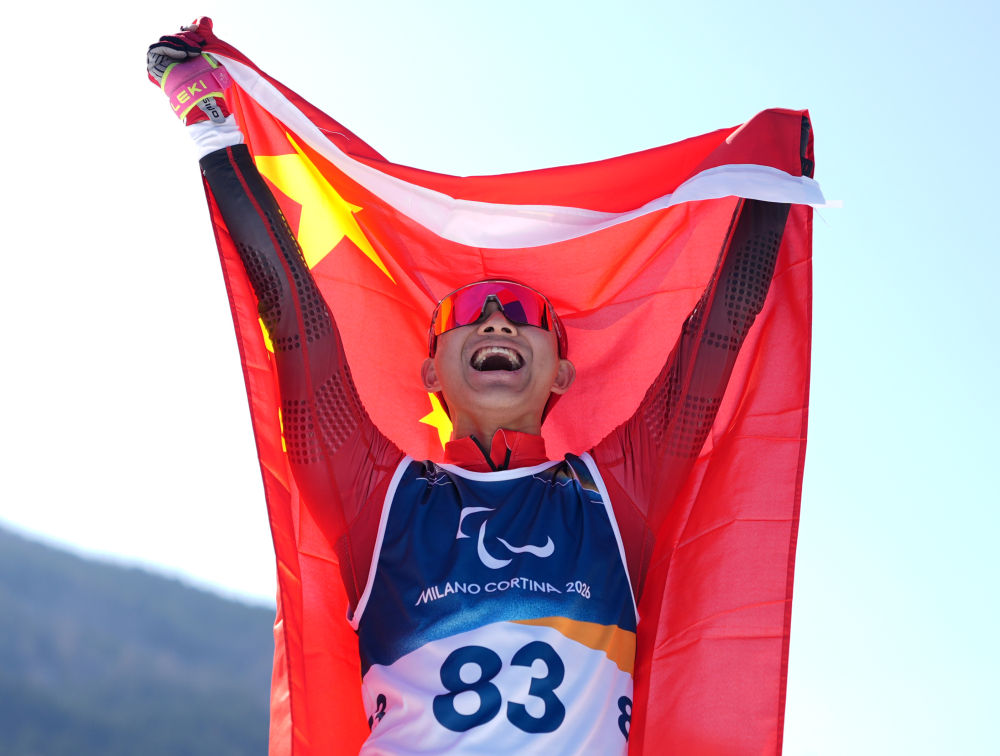 当地时间3月7日,在意大利泰塞罗举行的米兰-科尔蒂纳冬残奥会冬季两项男子短距离(站姿)比赛中,中国选手蔡佳云获得冠军。 新华社记者 侯昭康 摄