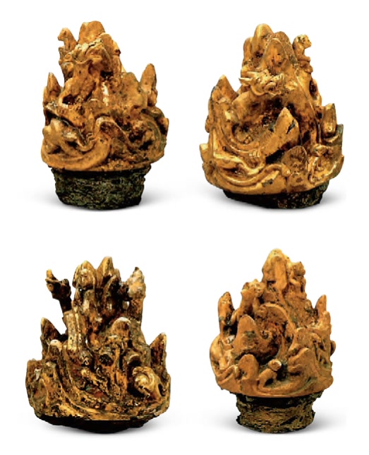 (1)材质工艺不同。海昏侯墓出土博山炉均为青铜质,使用失蜡法铸造而成,器型精致,细节严谨;路县故城遗址出土博山器均为灰陶质,使用轮制法和模制法制造,器型粗糙,简单体现形状。