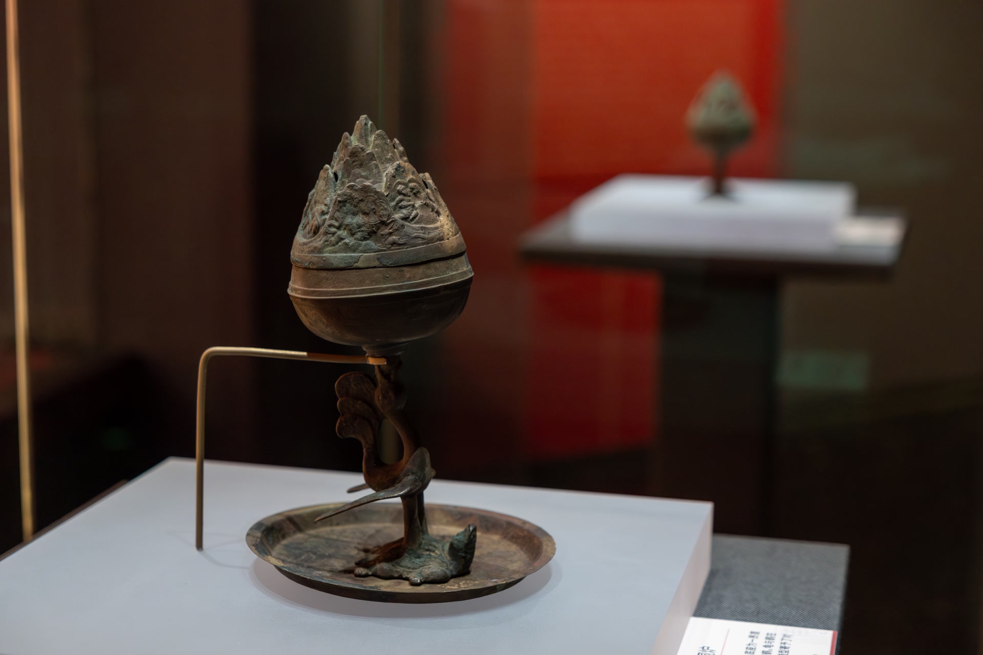 “海昏侯——身历王帝民侯 墓藏大汉风云”中的青铜神龟载鹤形座博山炉