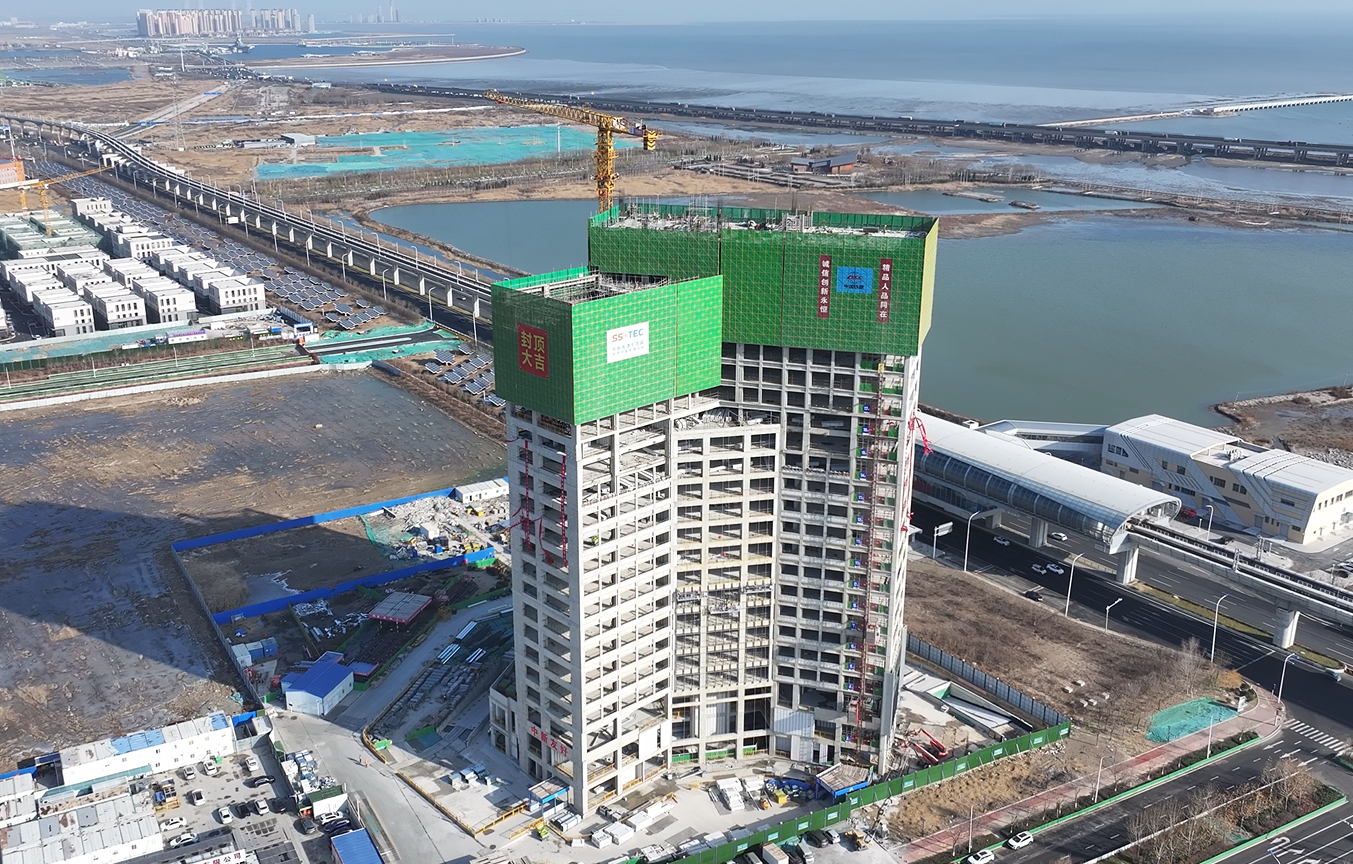 中新天津生态城绿创园是由中国和新加坡共同打造的低碳经济和创新中心,于2023年12月启动建设。作为绿创园的首栋建筑,绿创中心项目已完成结构封顶,目前已经顺利进入外立面与机电施工阶段,计划2027年竣工投用。