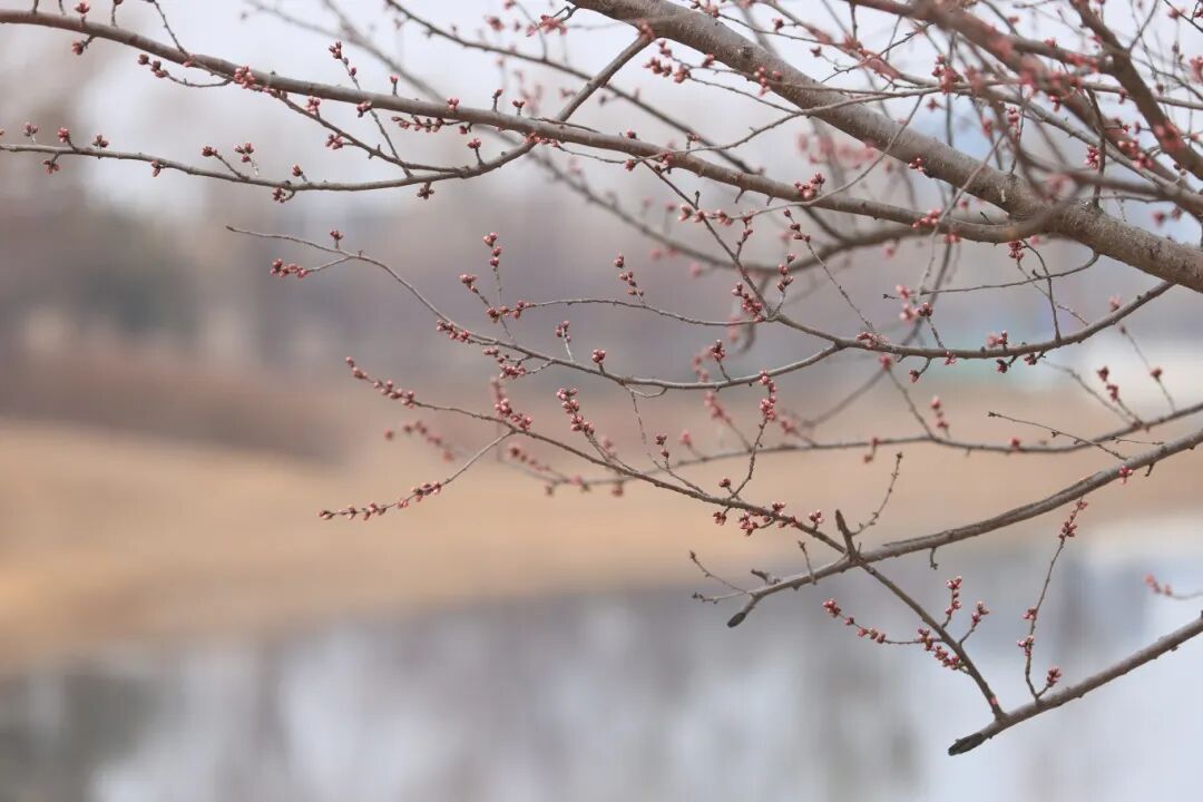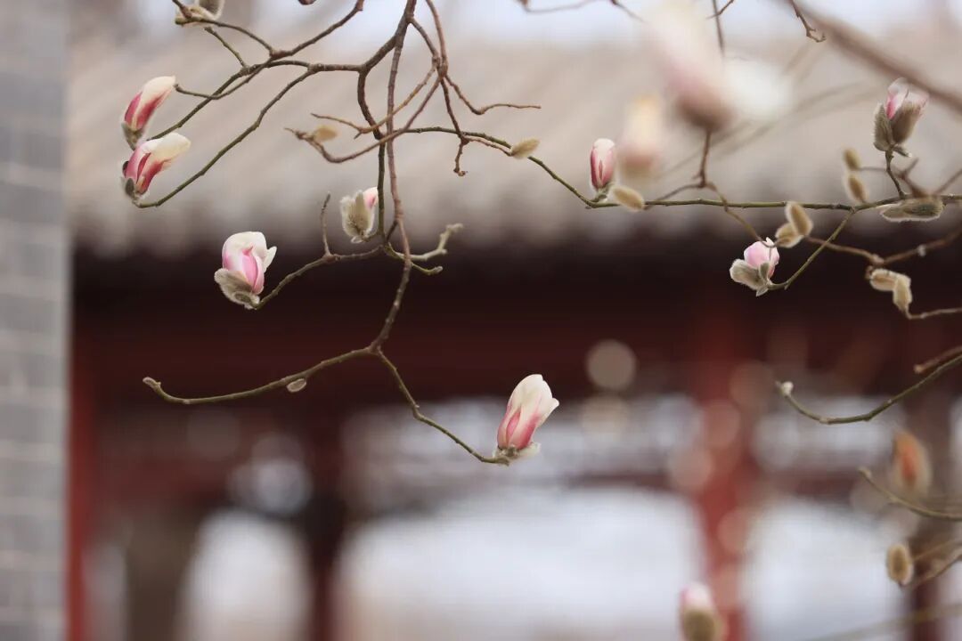 进门不远处的景致千万别错过!枝头缀满了未完全开放的花苞,有的鼓鼓囊囊,似要撑破花萼;有的微微裂开一道缝隙,露出里面娇嫩的花瓣。