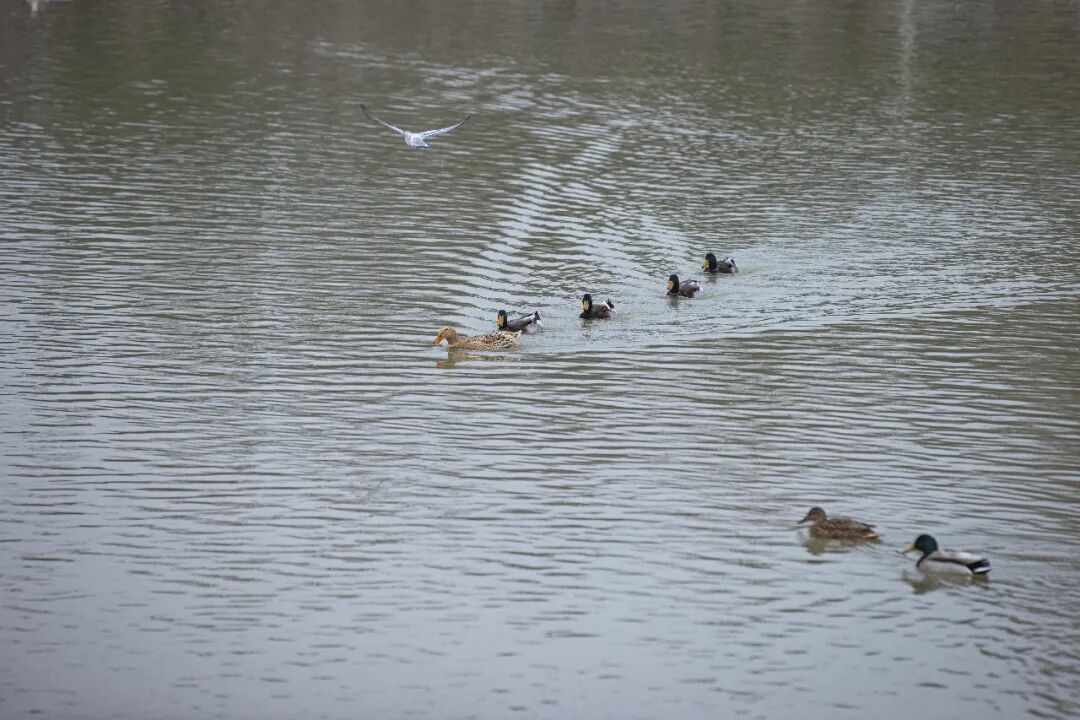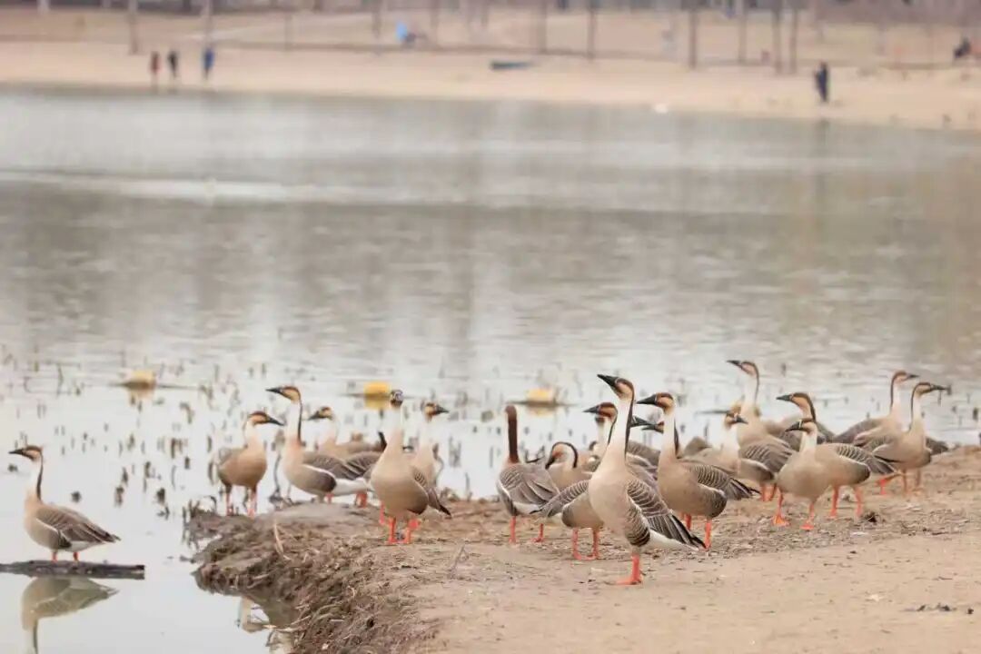 湖面上的生机为这份春日图景添了几分灵动。水禽在水中自在游弋,它们有的结伴嬉戏,划开层层碧波;有的低头觅食,啄食水中的水草与浮游;还有的偶尔抬头梳理羽毛,模样憨态可掬,引得游人驻足观赏、轻声赞叹。