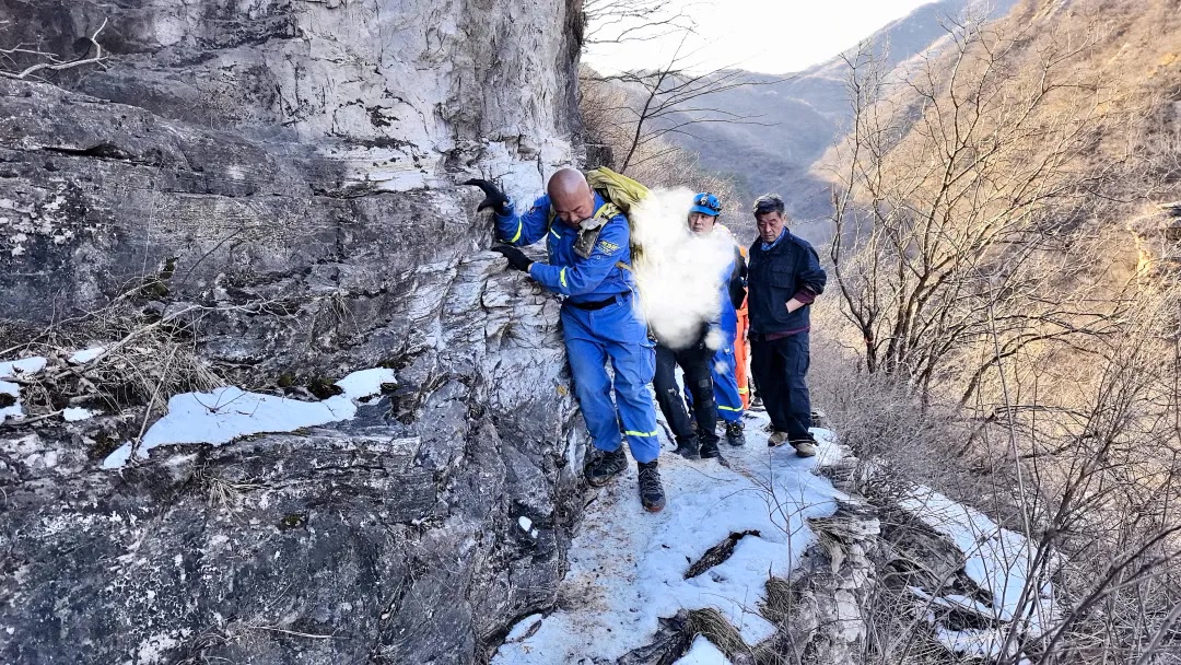 历经数小时紧张转移,两名被困者在天黑前安全下山。