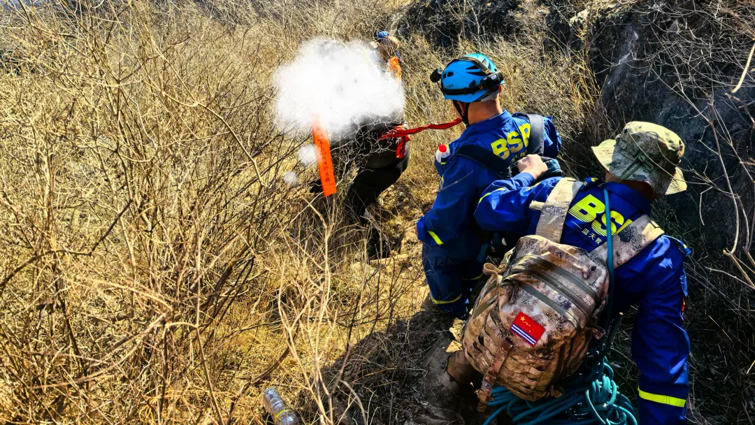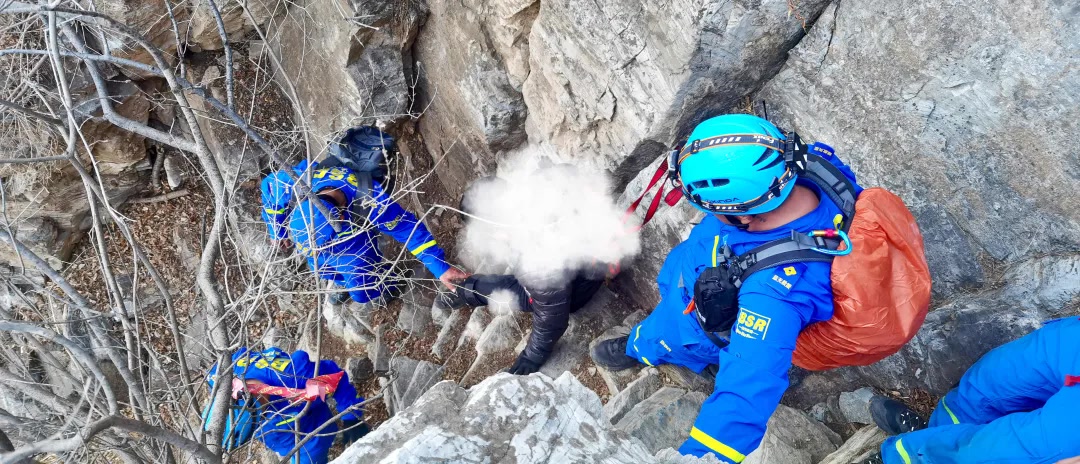 3月11日下午,房山蓝天救援队9名队员正在进行山野拉练,就在拉练结束准备返回时,得到消息有人被困于这座野山。队员们迅速将拉练转为实战救援,接着,队里又迅速派出18名队员前往支援,一场悬崖救援行动就此展开。