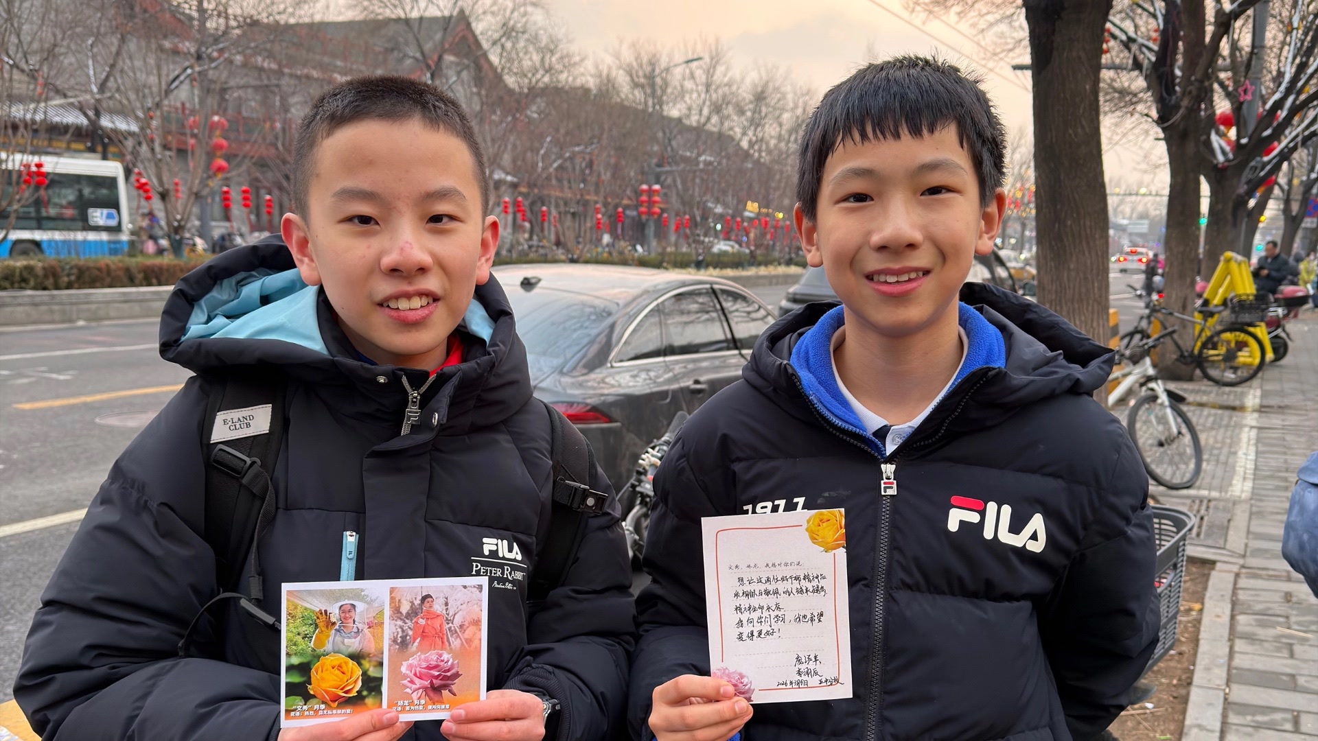 采访结束的时候,付玮烨早已感受不到北方雪天的寒冷。半数明信片被真诚的文字填满,也温暖了他的心。