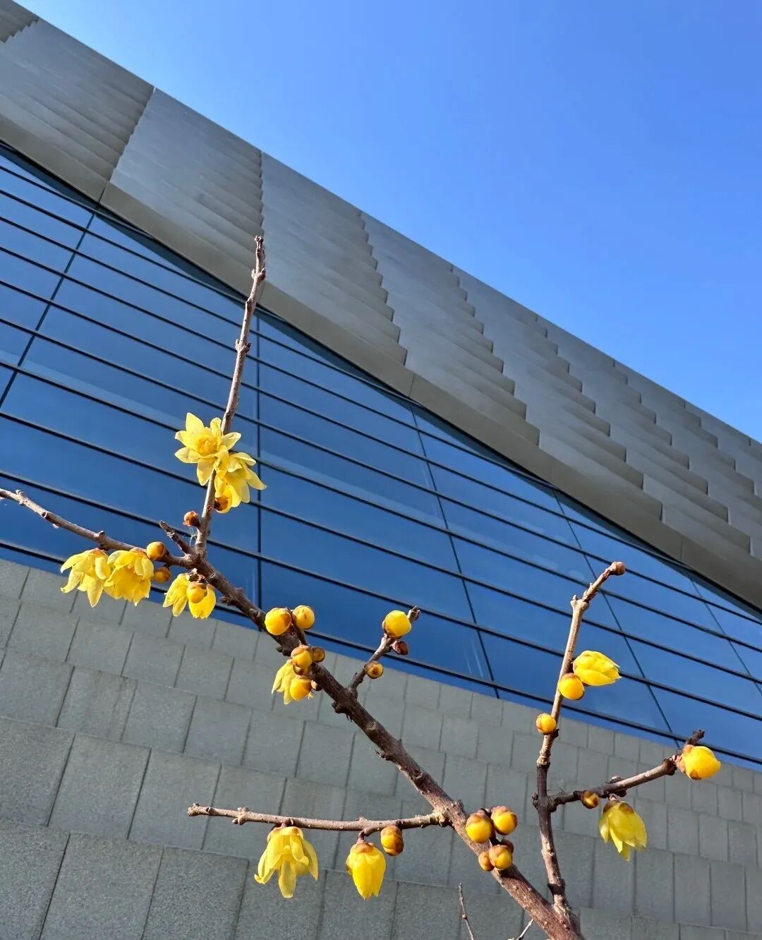 北京艺术中心的蜡梅开得正盛