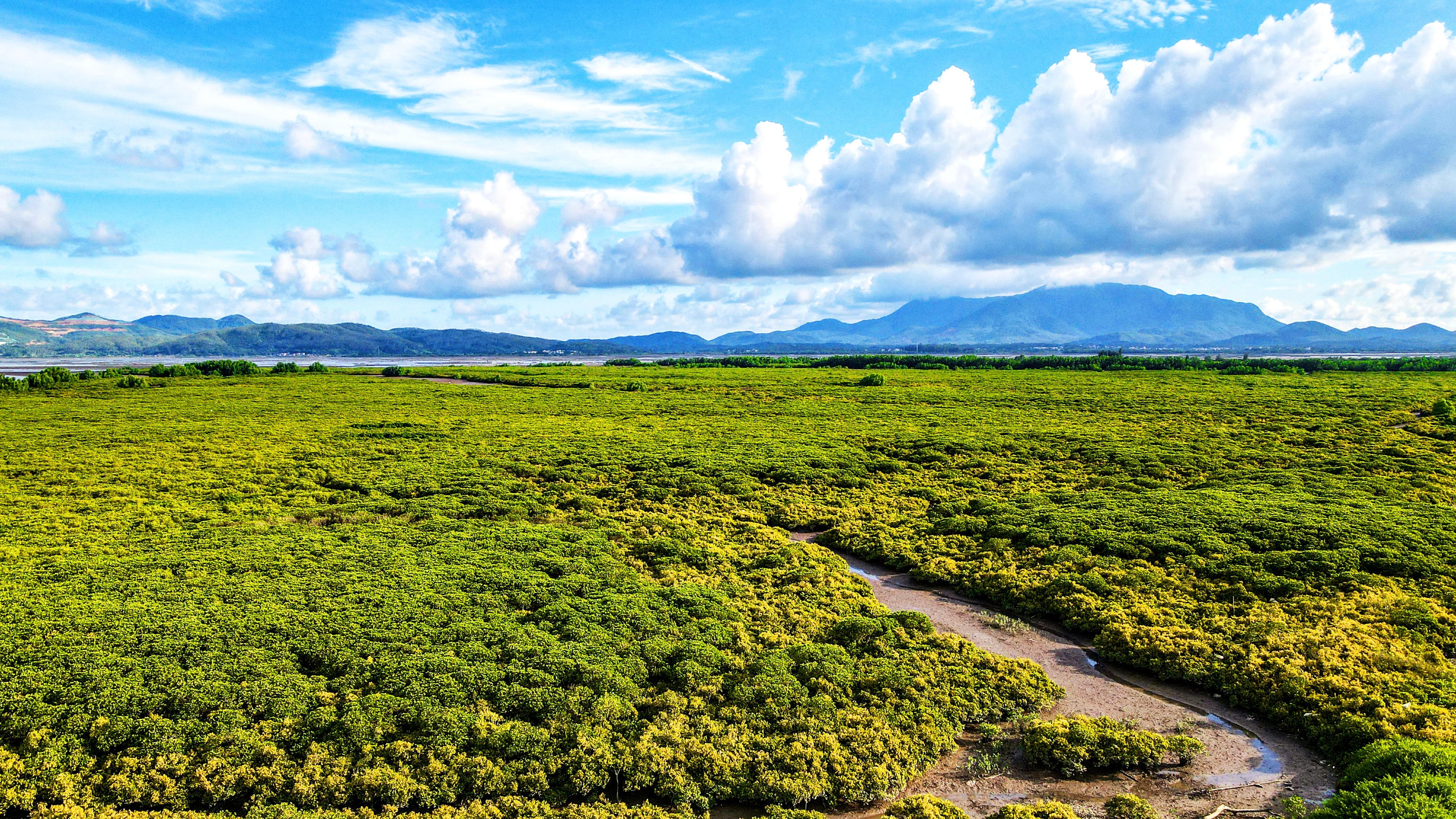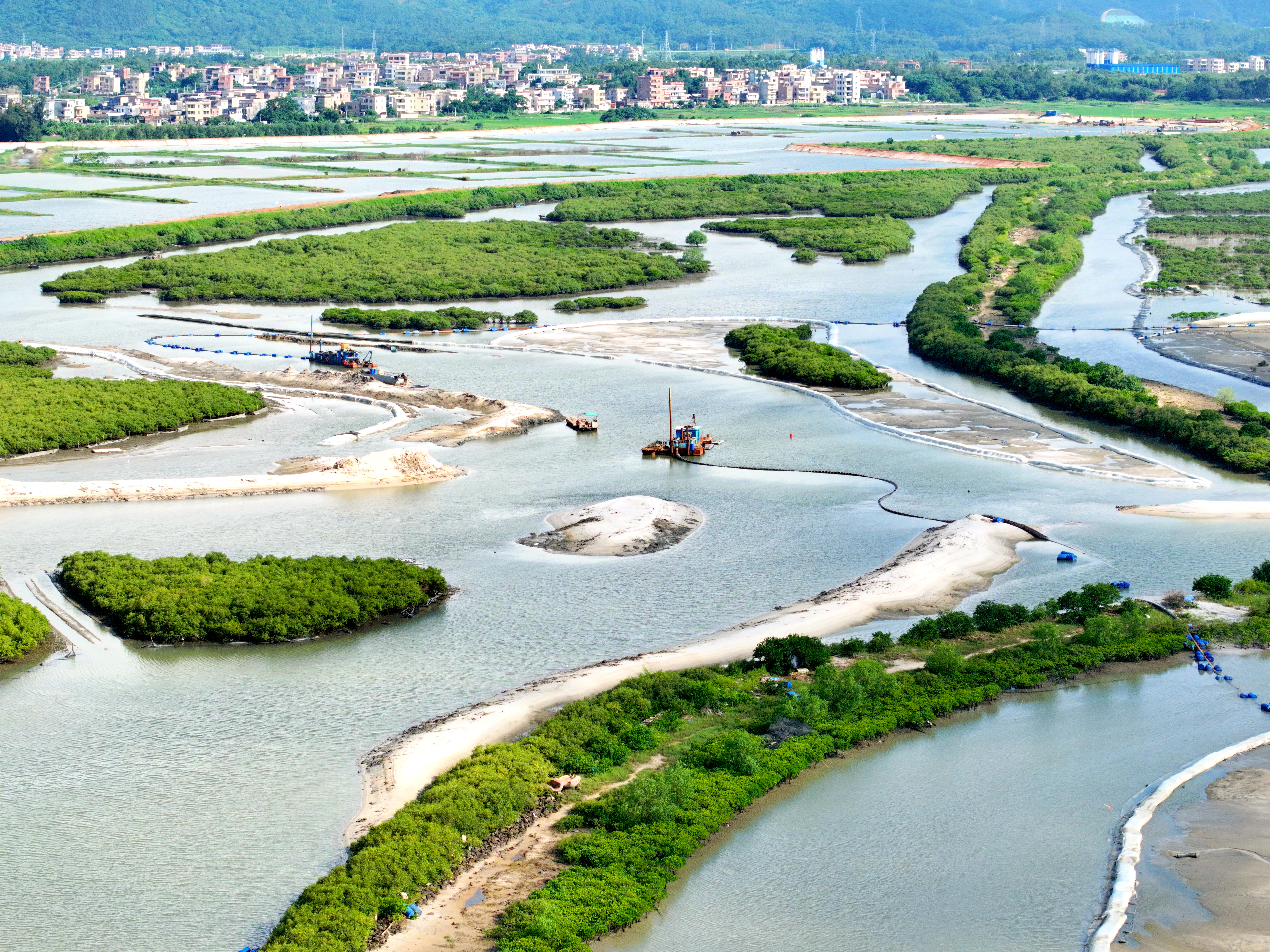 在项目团队的努力下,昔日荒芜的滩涂上,25座生态岛屿错落有致,298.26公顷红树林生机勃发,42796米护滩工程守护海岸安宁,780米生态海堤蜿蜒串联起绿色屏障,白鹭、苍鹭等水鸟在此栖息觅食,鱼、虾、蟹等海洋生物自在游弋,生机盎然,一幅林海相依、万物共生的生态画卷在阳西大地徐徐展开。