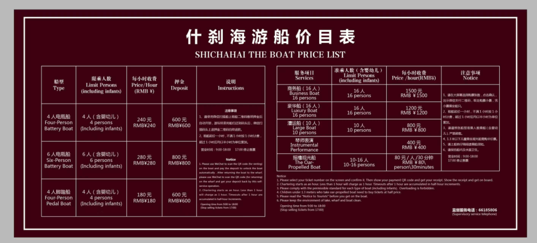 为保障游客游玩体验,什刹海游船开通专属咨询热线(010-66125717),游客可在出行前拨打电话向工作人员咨询运营信息、码头分布、价格详情、乘船注意事项等各类问题。需要注意的是,随着游船开航,什刹海的游客量将逐步攀升,在节假日等高峰时段,建议游客提前规划行程;同时,景区倡导文明出游,爱护水域环境,不要随意丢弃垃圾,共同守护什刹海的清澈与美丽。