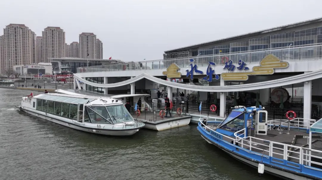 试运营期间,海河城区段的永乐码头、津湾码头每日运营时间为10:00至21:30,游客可从这两大码头登船,沉浸式饱览海河春日盛景。