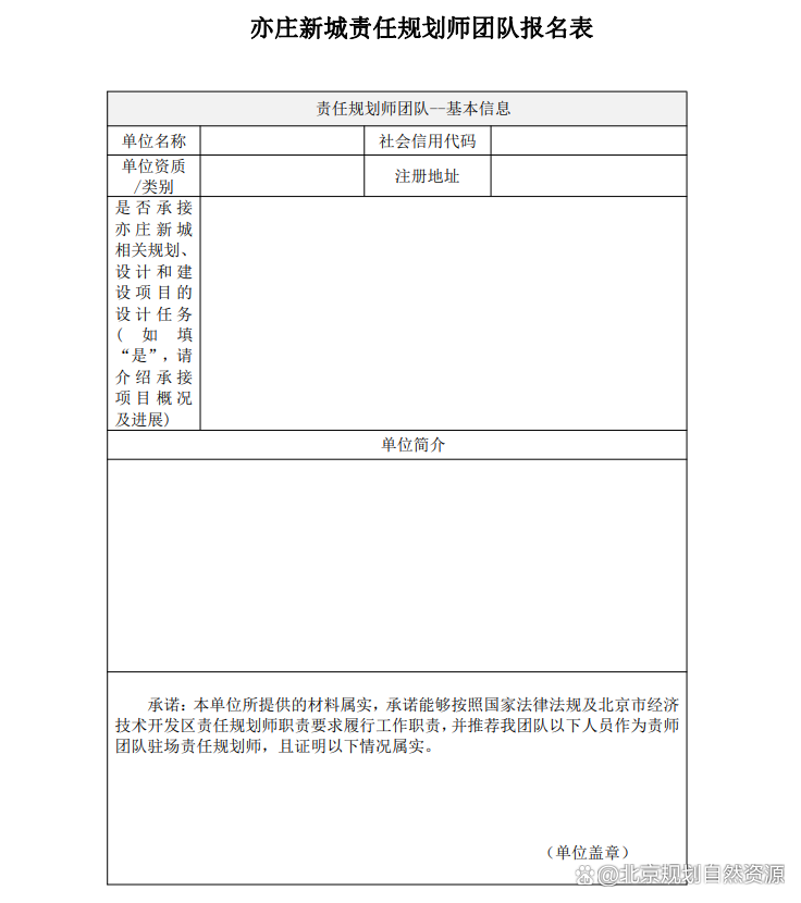 请填写报名表,并将报名表和其他需要提交材料的电子版(不超过500M), 发送至邮箱:kfqghfj@bda.gov.cn,邮件名称为“责任规划师-团队名称”。