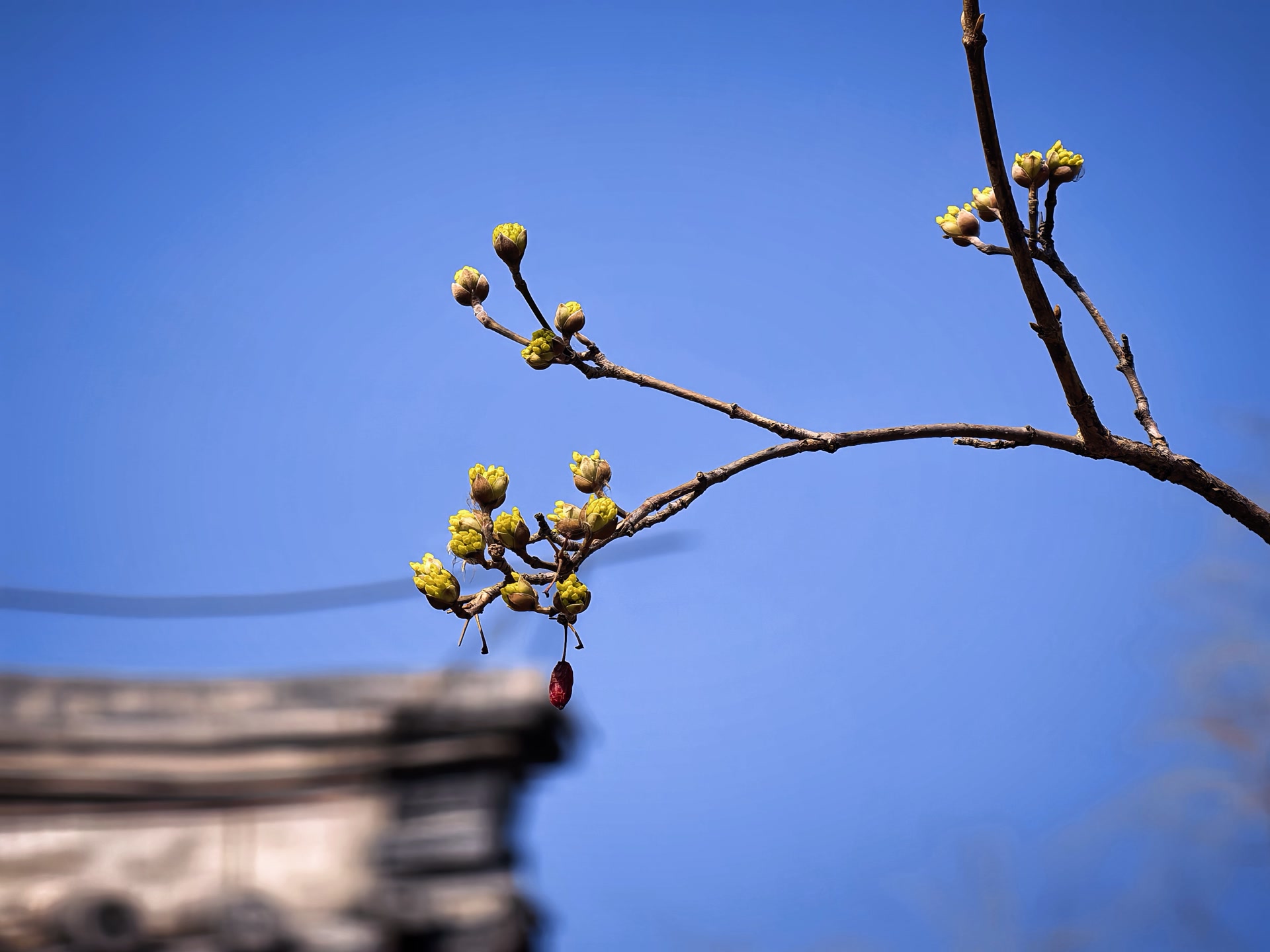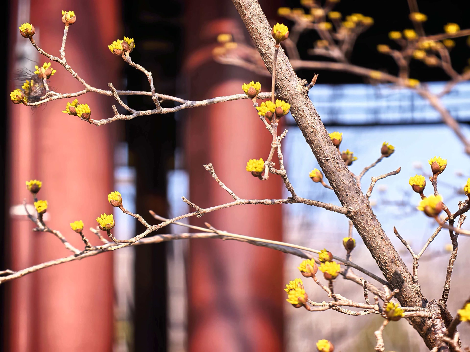 山茱萸含苞待放。洪华中摄于通州城市绿心森林公园