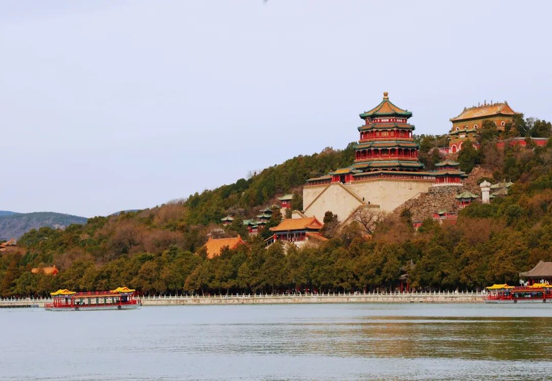 从文昌阁登船,远眺西山群峰如黛,近观万寿山古建筑群层叠而上;从排云门出发,长廊如带、南湖岛如翠,佛香阁巍然矗立;若从畅观堂码头启航,还可观赏藻鉴堂水域初夏时的荷塘胜景。