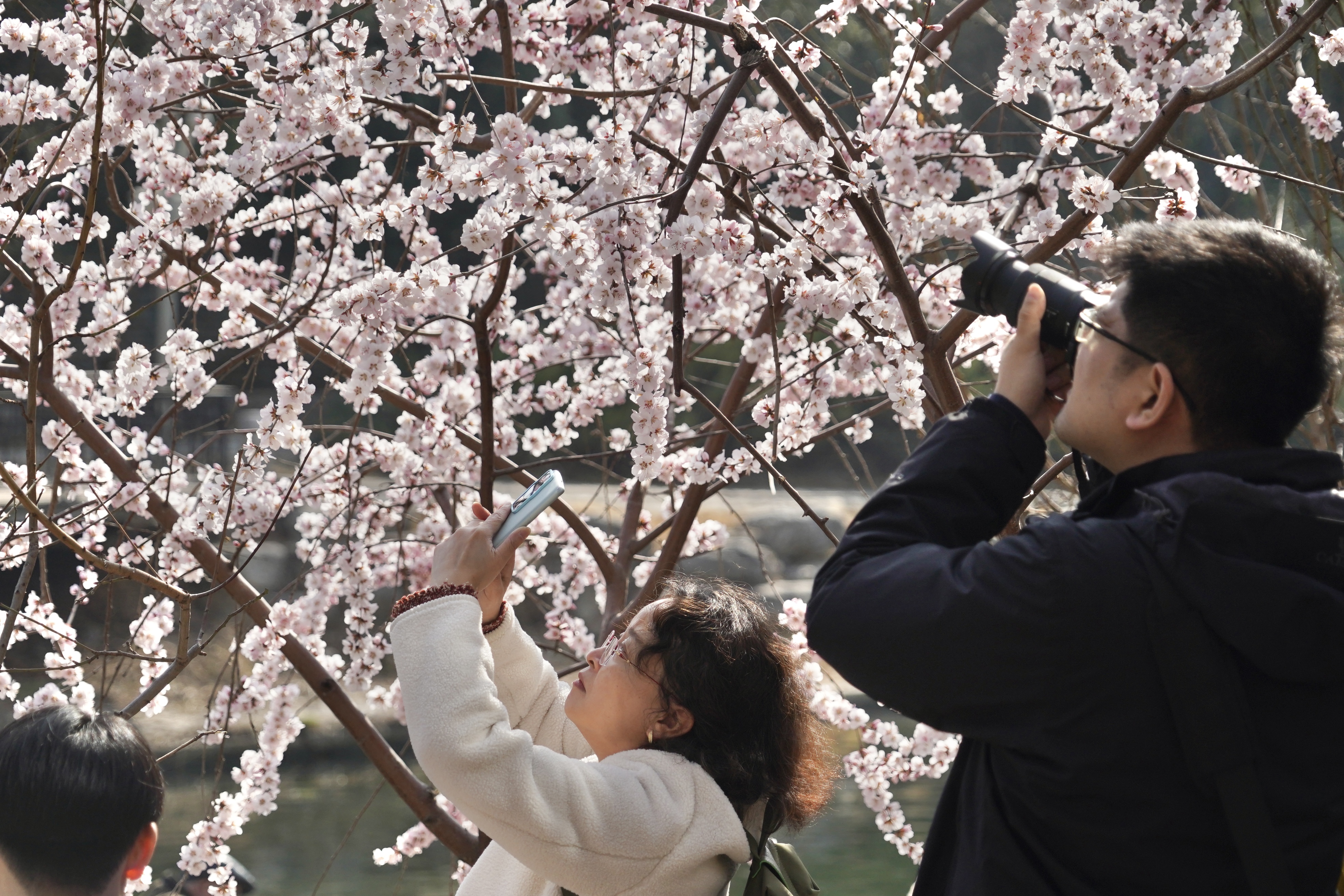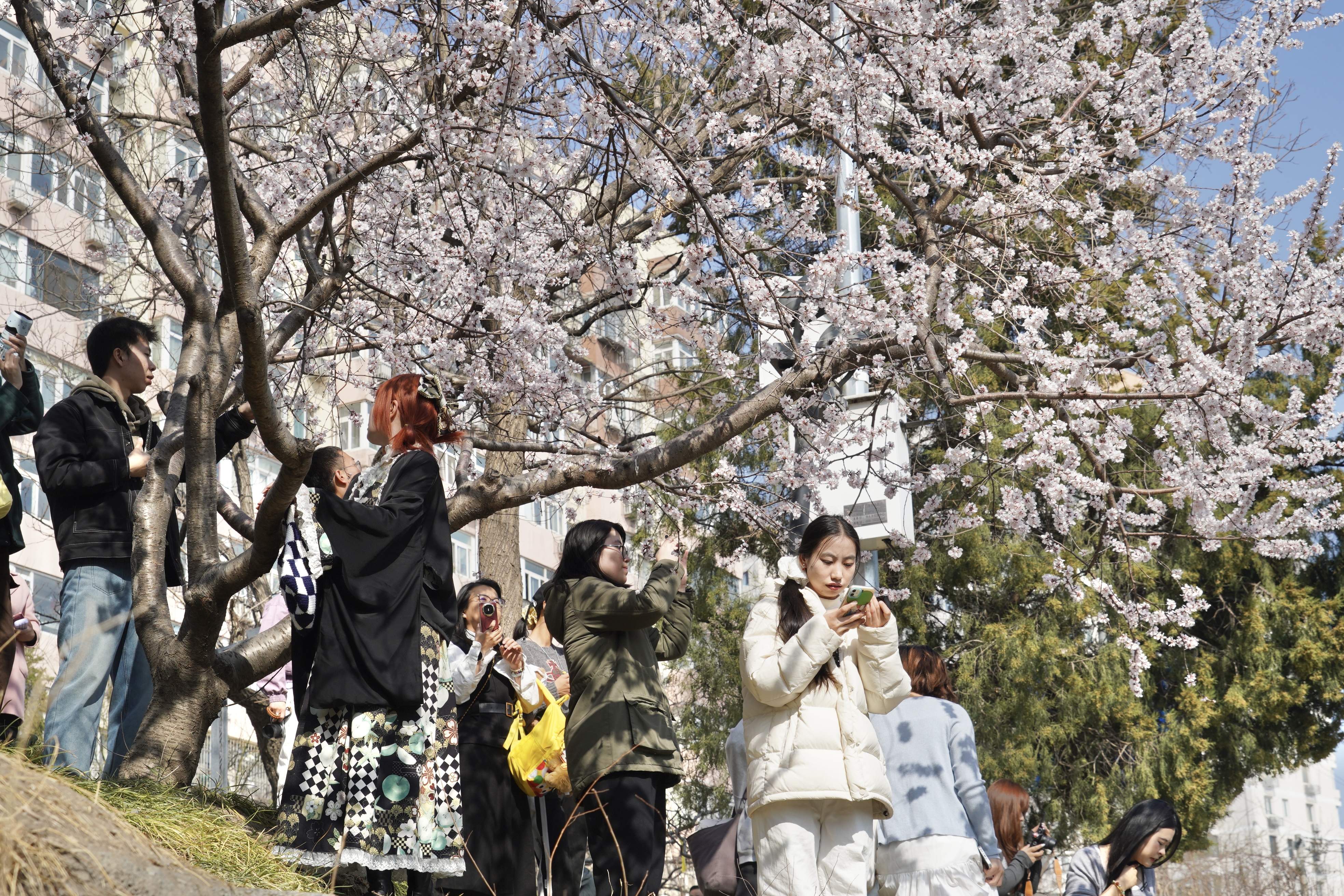 春到二环!山桃花绽放,市民纷纷打卡