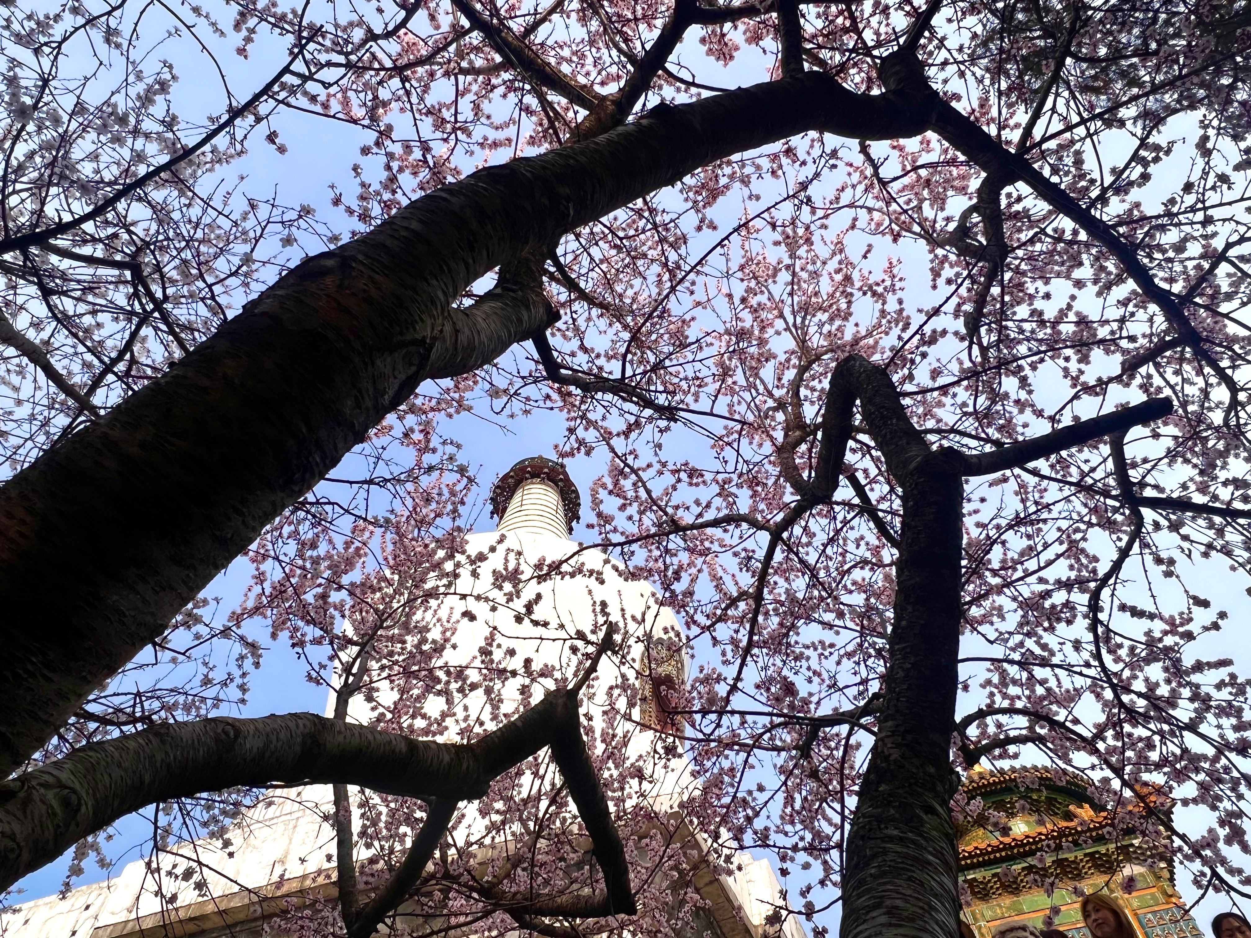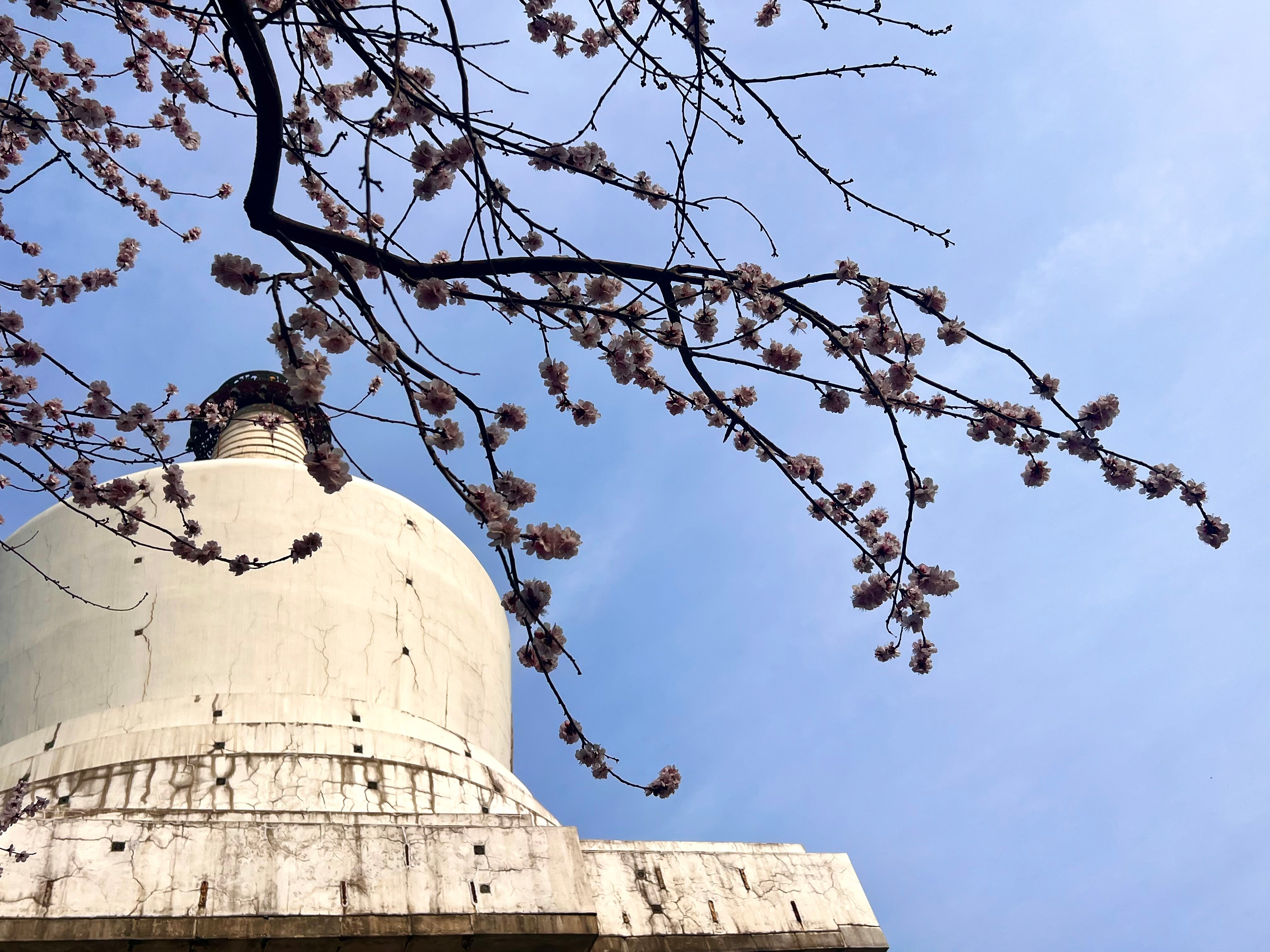 春天已至琼华岛,粉桃初绽映白塔