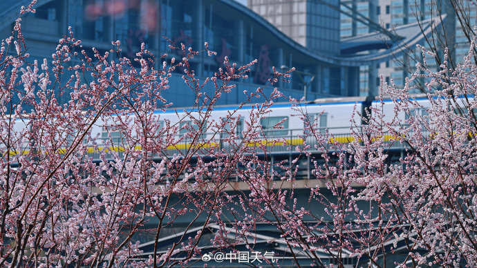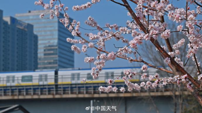 粉白的山桃花开满枝头,北京这趟开往繁花的轻轨正携春而来。网友:春日浪漫氛围溢出屏幕了↓↓