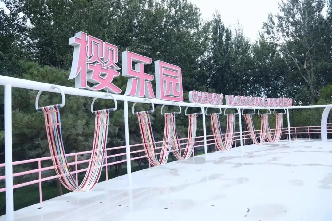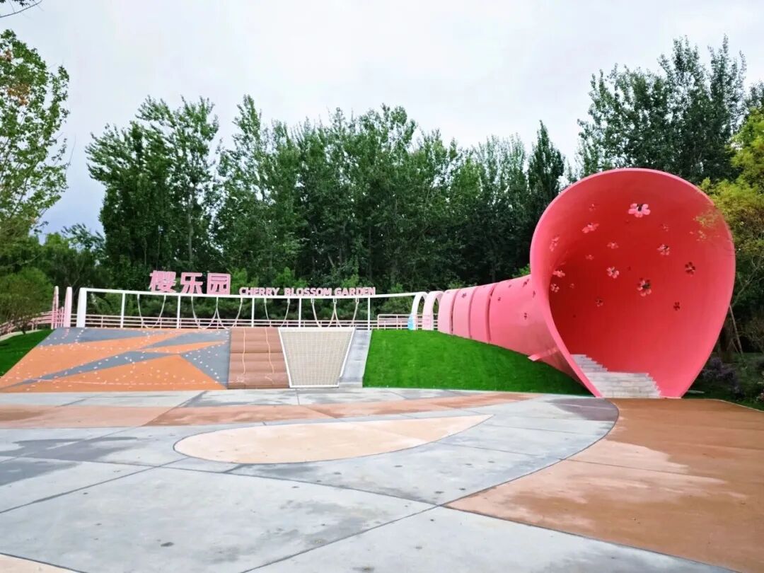 “遛娃党”请注意,这里是孩子们的天地!紧邻花海的樱乐园是北京首个以樱花为主题的无动力全年龄段乐园,巨大的梅粉色“樱花喇叭”不仅好看,更兼具滑梯、攀岩等运动功能,这个春天带着宝贝一起来游园吧。
