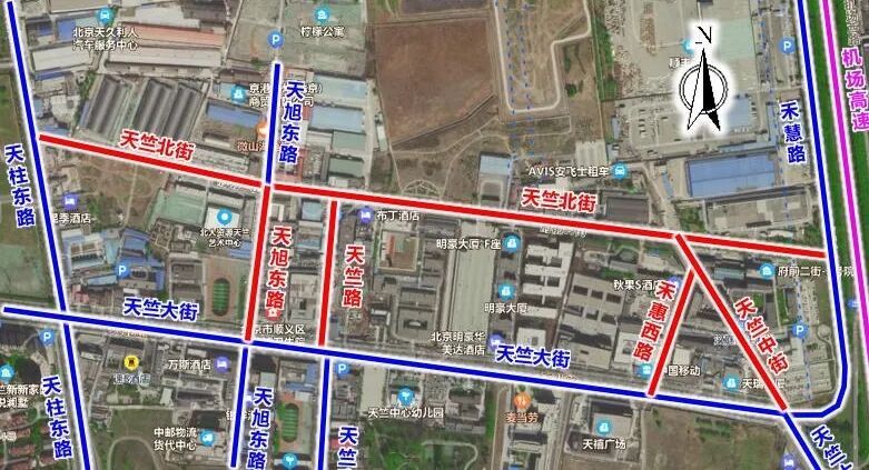 天旭东路:南起天竺大街(天北路),北至天竺北街;