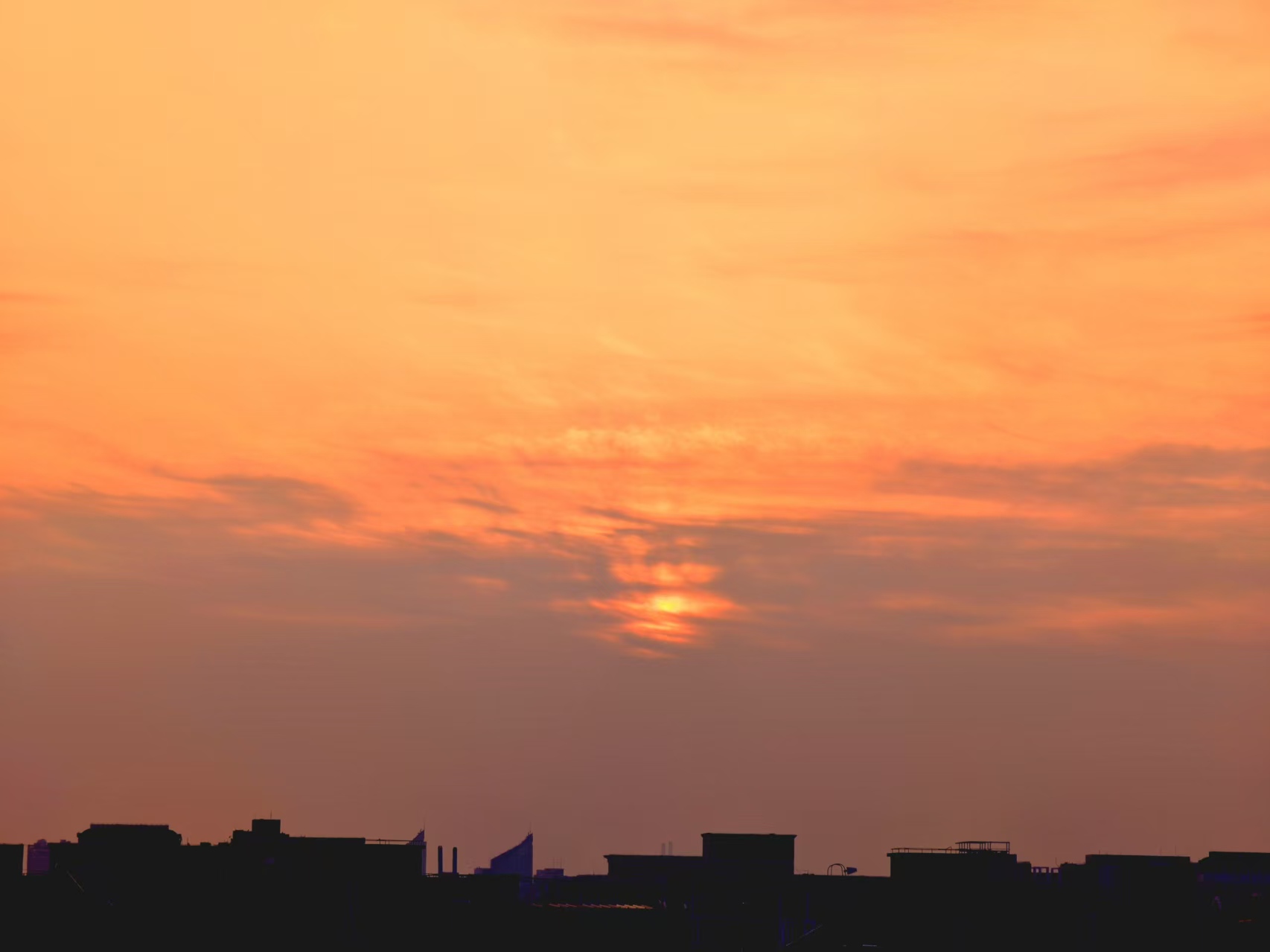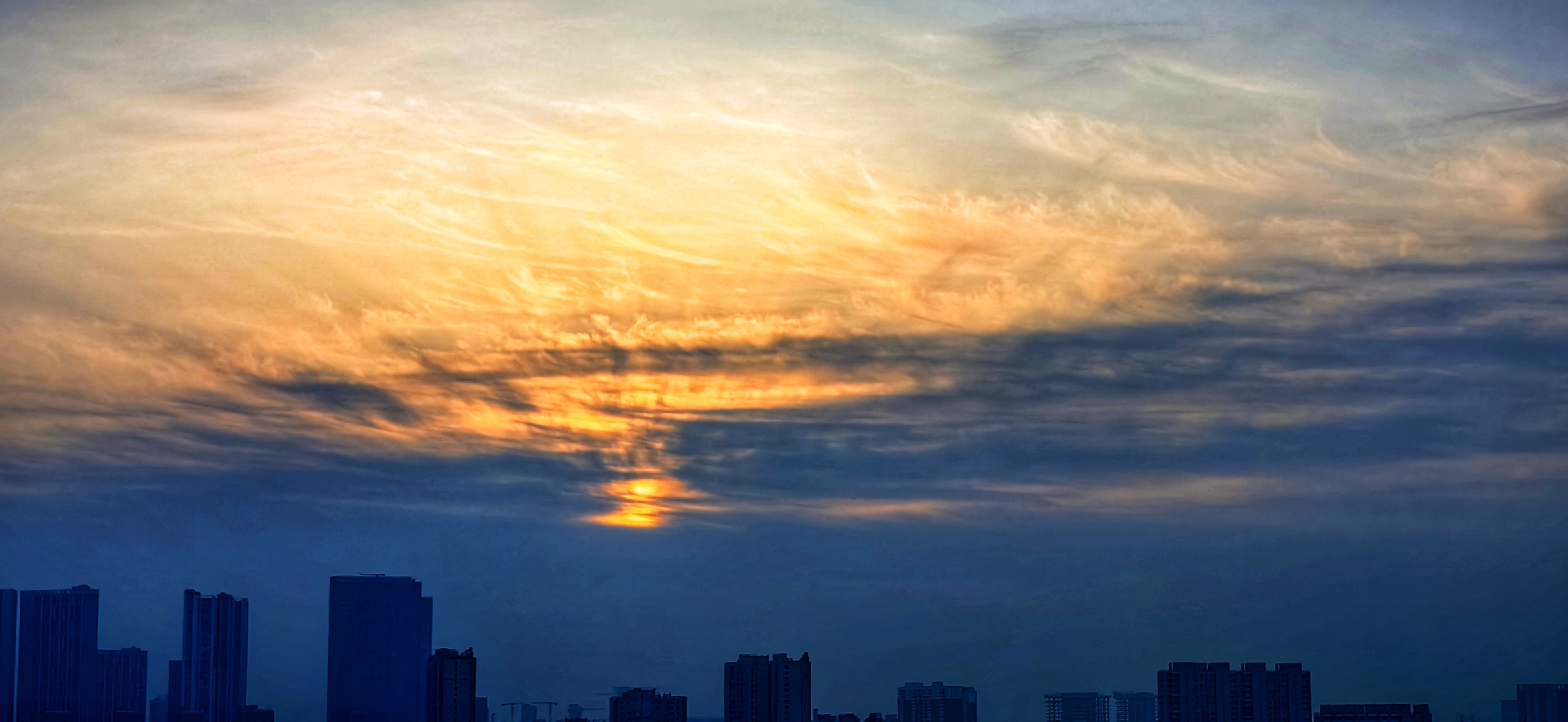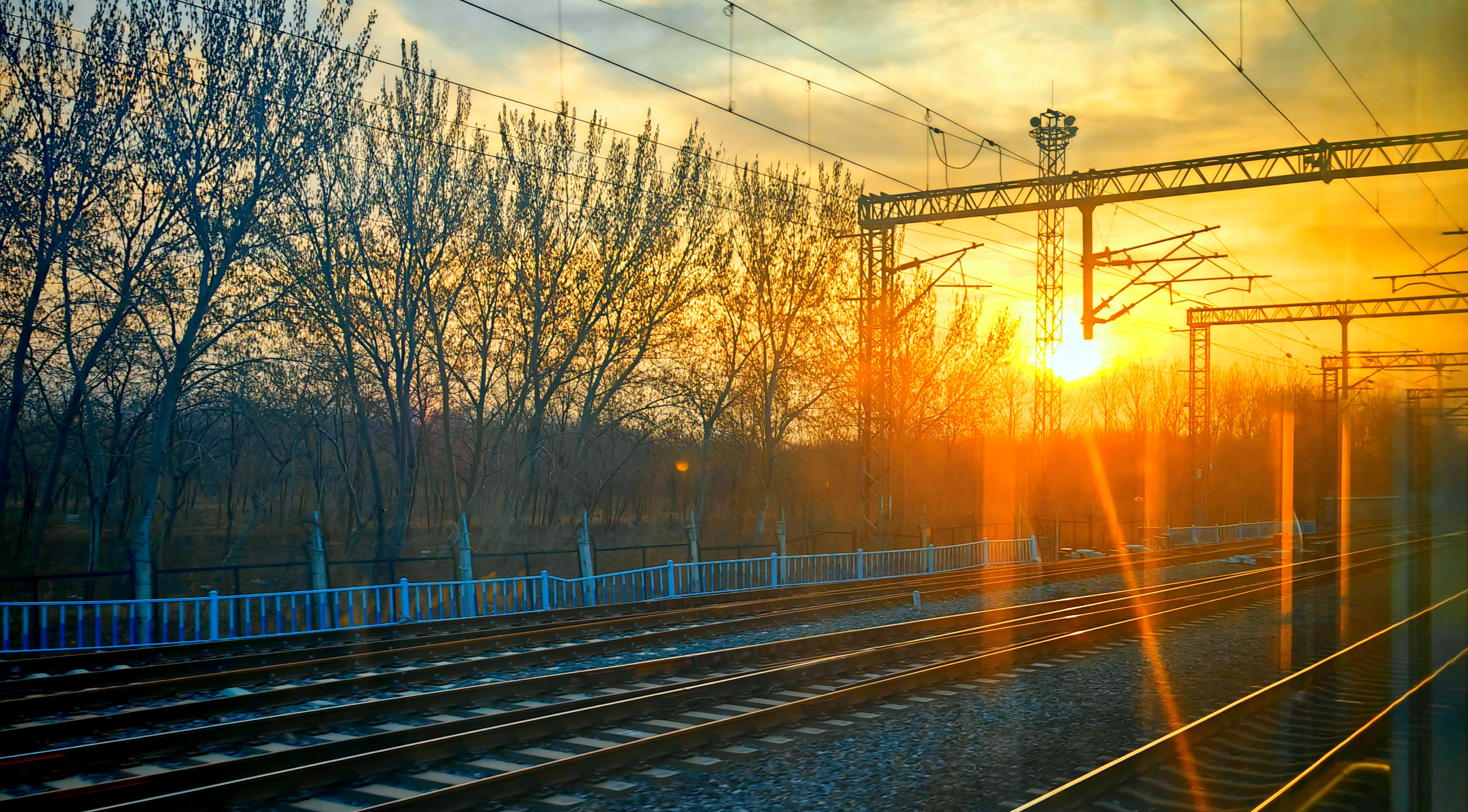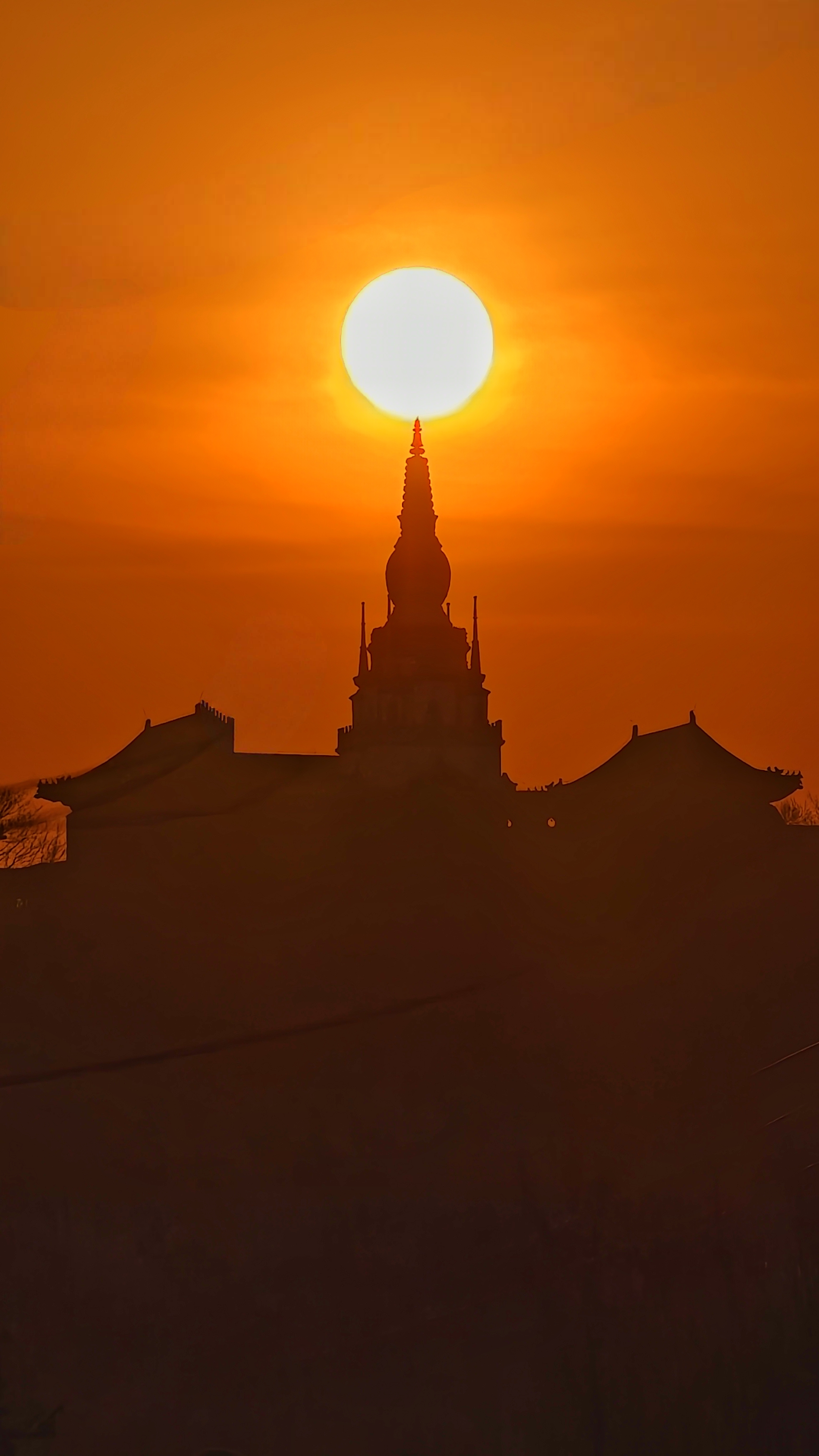 朝霞扮靓北京天空,玉渊潭又现金光穿洞