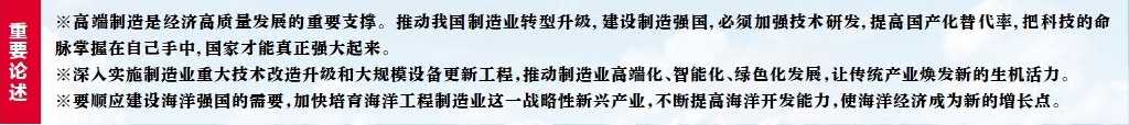 坚持自主创新,筑牢了发展根基。航空母舰,是国防与综合工业实力的体现;大型邮轮,堪称“海上浮动城市”,对舒适性、安全性和系统集成要求极高;LNG船,被称为“海上超级冷冻车”,在材料工艺等方面都有着苛刻要求。坚定不移走中国特色自主创新道路,把关键核心技术牢牢把握在自己手中,我国才集齐这造船业“皇冠上的三大明珠”,才实现全谱系发展,并且高技术、高附加值船舶占比不断扩大。