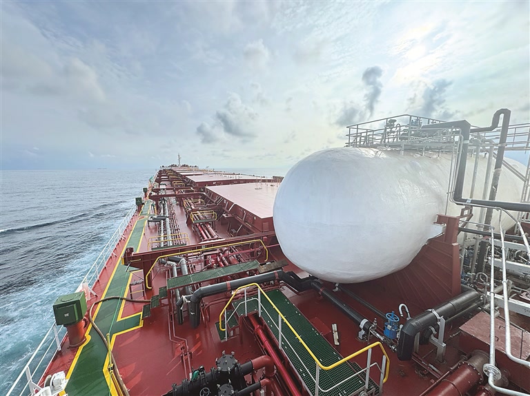 最新数据显示,我国新接绿色动力船舶订单份额占比已达70%。除了LNG和甲醇双燃料动力船舶,我国在氨、氢、生物燃料等新能源动力船舶领域也取得突破;船舶碳捕集与封存技术实现关键进展,全球首套全流程船舶碳捕集系统已完成全球首次船对船液态二氧化碳接卸作业。