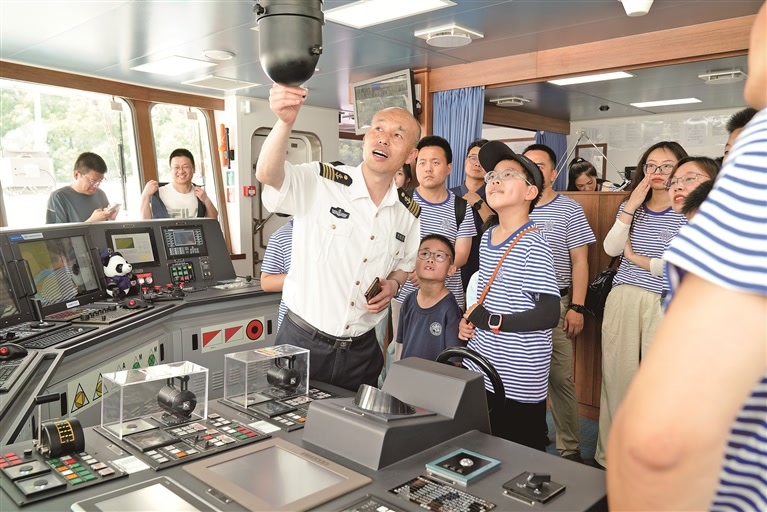 市民参观全球首艘具有远程遥控和自主航行功能的科研及实训船“新红专”轮驾驶室。图片由受访单位提供