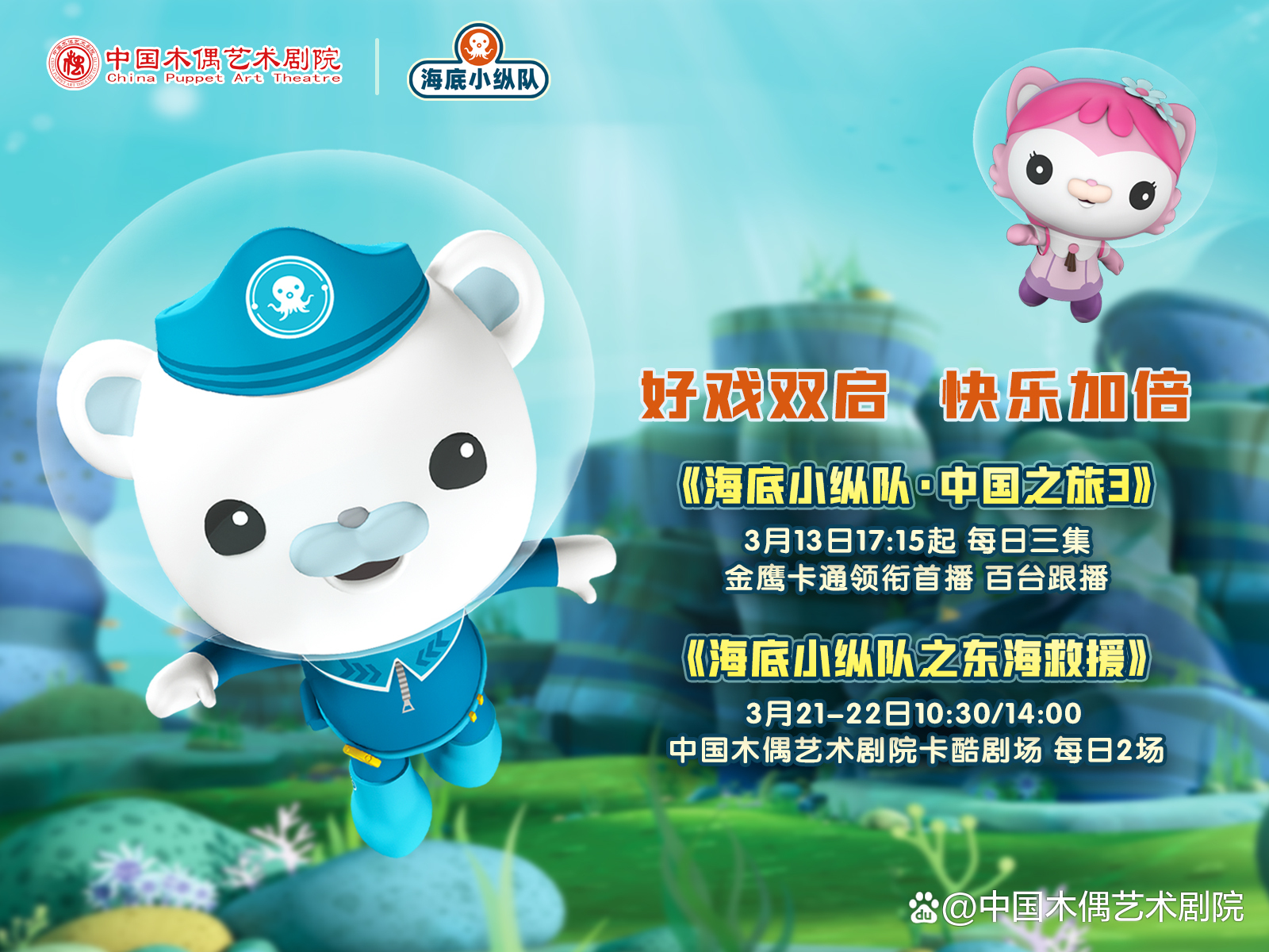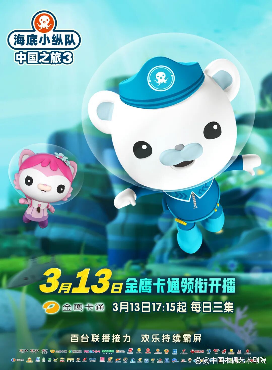 重点来啦!还没看够的小伙伴,千万别错过后续播出:3月13日17:15《海底小纵队·中国之旅3》已正式登陆金鹰卡通卫视,每天3集。让我们每天都和小纵队一起开启新的探险,这个春天,让陪伴不缺席!