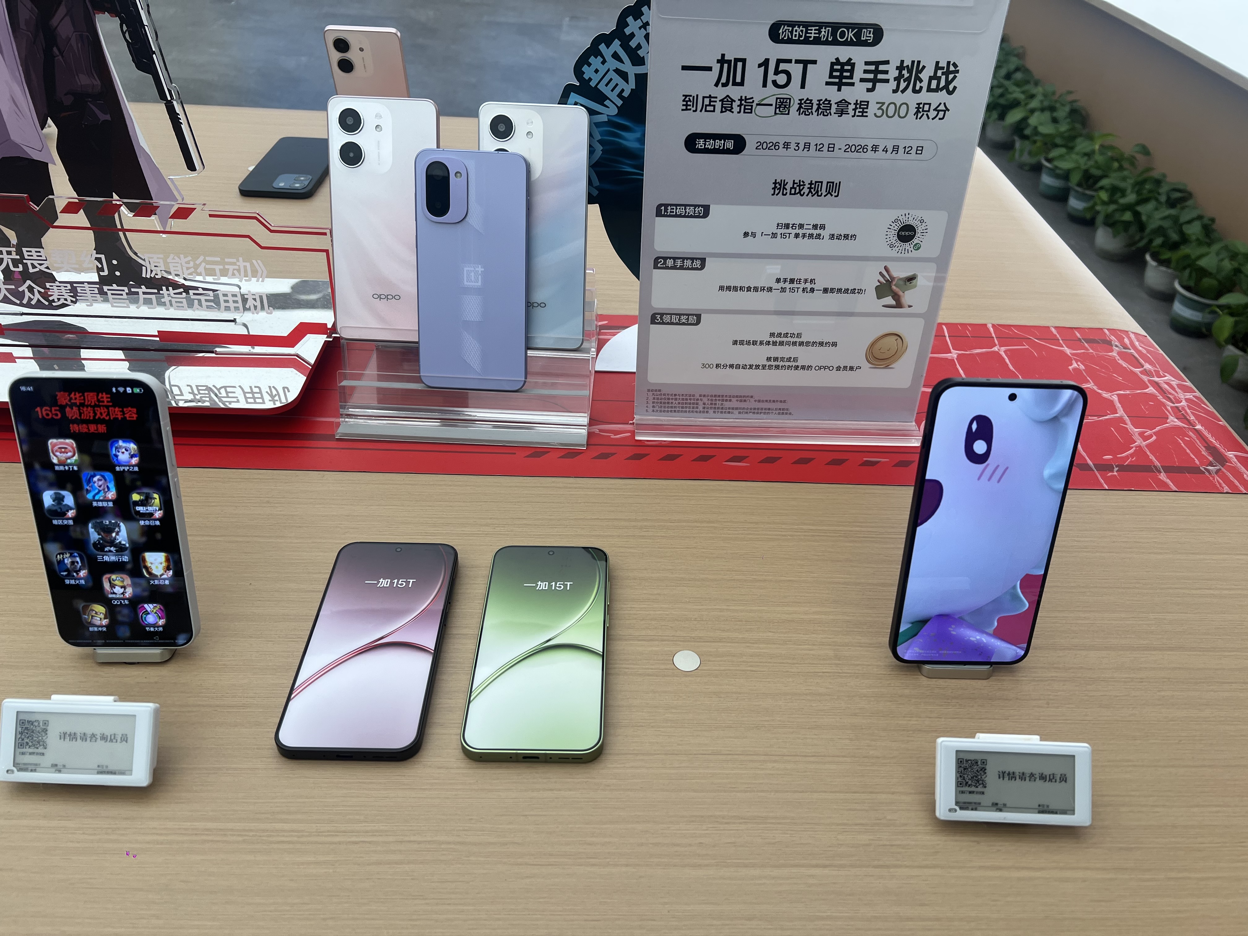 3月16日是OPPO执行调价首日。在双井京东Mall手机专区,记者看到OPPO专柜部分原价签已被撤下,统一更换为“详情请咨询店员”的新价签。店员透露,部分机型价格上涨约200元至500元,“一加15系列整体涨了500元,现在国补后的价格,其实就是之前的原价。”