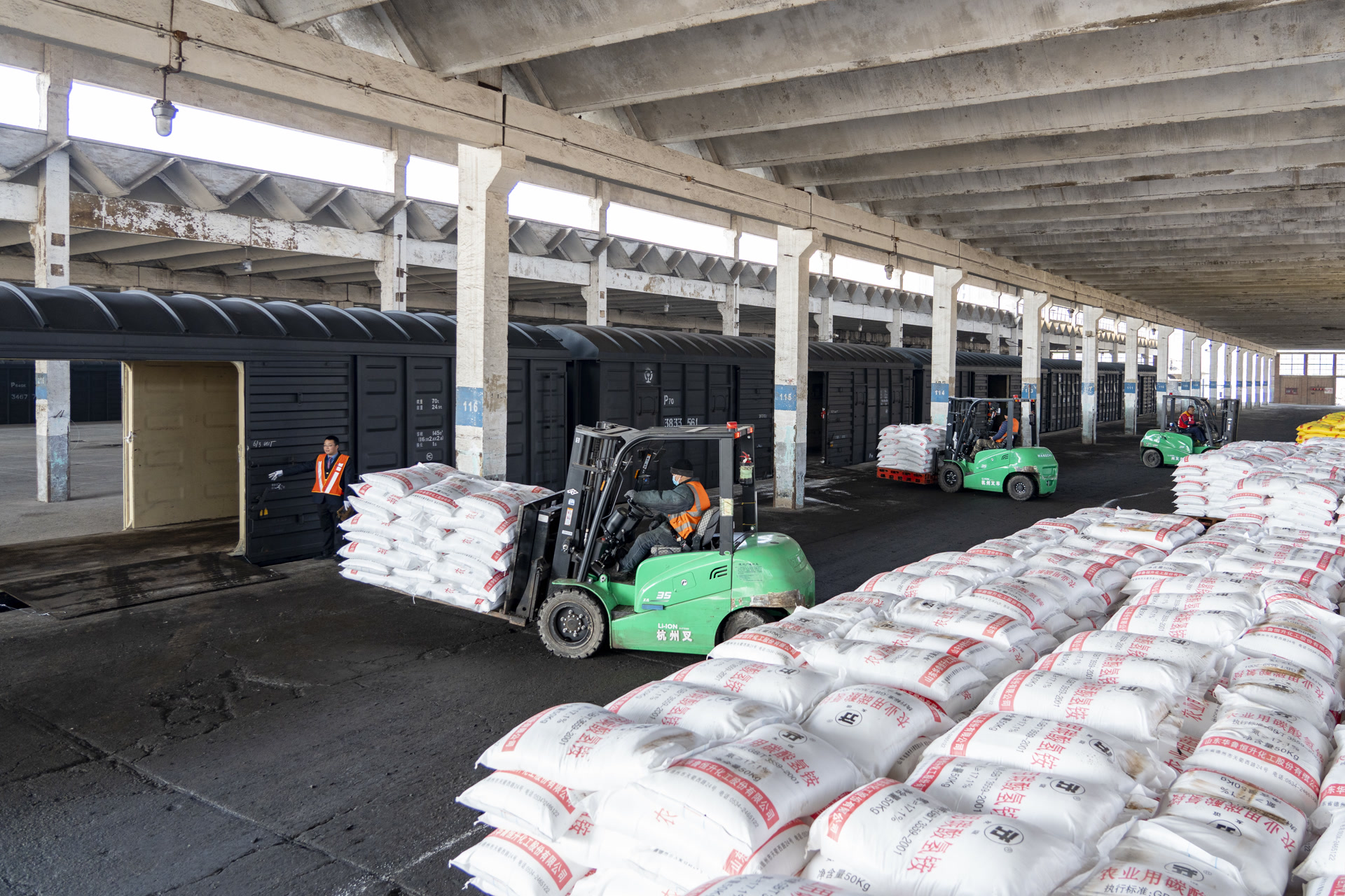 国铁北京局石家庄铁路物流中心在八里庄、潞城、衡水等多个营业部设立春耕物资运输热线,解答企业咨询,提供“随生产、随装车、随发运”的“一站式”快捷运输服务,并打造“优先请车、优先承运、优先装车、优先挂运”绿色通道;天津铁路物流中心升级改造装车机械设备,在化肥装车和运输过程中统一使用相同规格的货物托盘,实现化肥从生产下线到装车发运全流程机械化作业,使装车人力由原来人机配合时的5人减少为目前的1人,装车时间由原来的2.5至3小时每车减少到1至1.5小时每车,大幅提升了化肥装车作业效率。