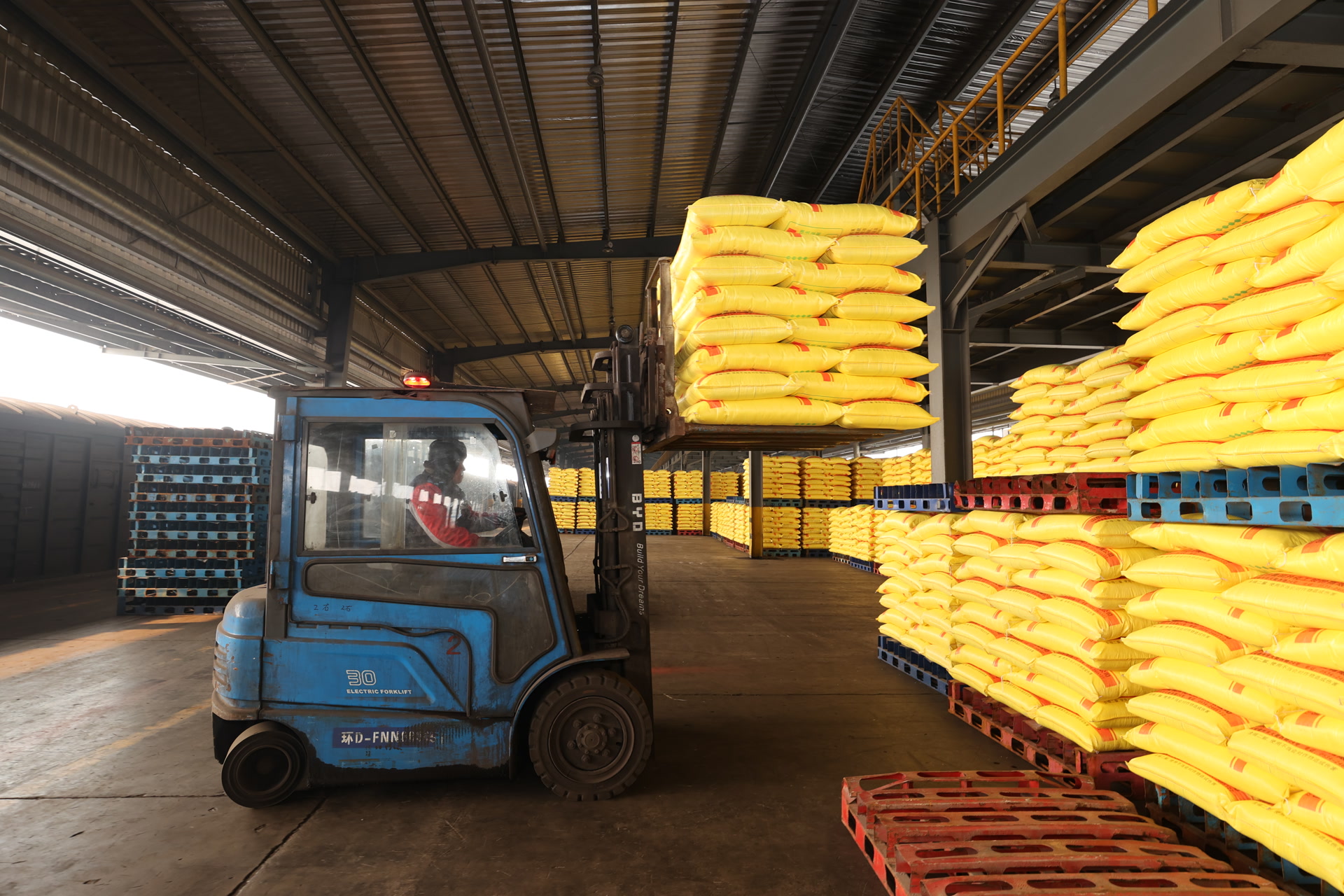 叉车铁臂挥舞呼呼作响,装卸人员协同作业,一袋袋化肥被精准码放、快速装至短驳车辆,满载春耕物资的汽车鱼贯而出,朝着田间地头疾驰而去……这是当前国铁北京局辖区内徐水、衡水、德州、东光等多地铁路货场的繁忙景象。今年以来,国铁北京局已累计接卸化肥7100余车、近44万吨,发运化肥1500余车、10万余吨,助力春耕物资快速运抵田间、服务农业生产。