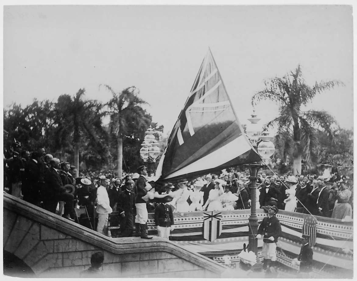 1898年,美国正式吞并夏威夷,王宫前的夏威夷国旗被降下。