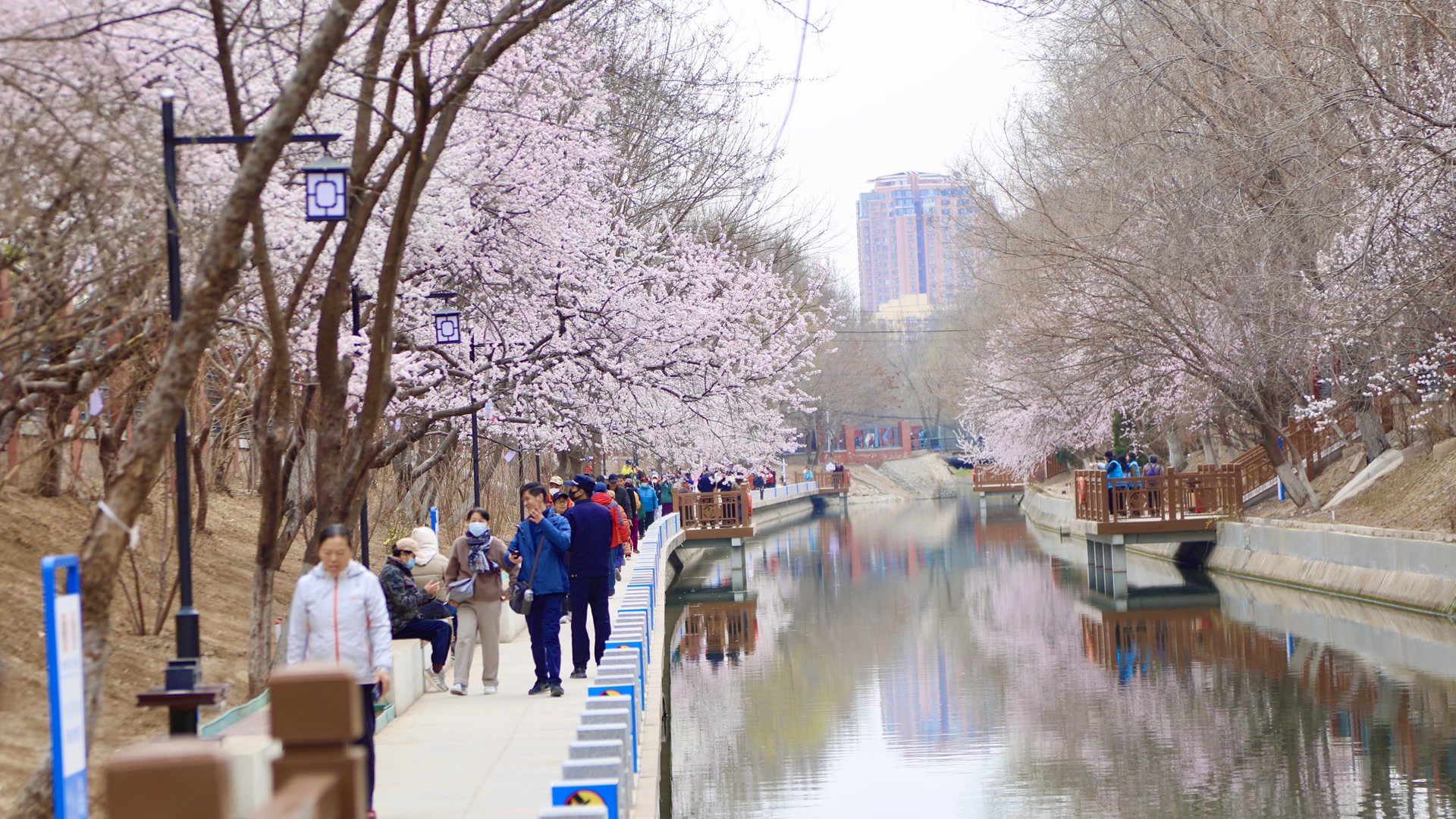 在重点观景区域、亲水平台及人流密集路段,六里屯街道增加了值守人员,实行“定点值守+不间断巡查”相结合的模式,及时疏导人流、引导有序游览。现场也有志愿者为游客提供咨询指引。