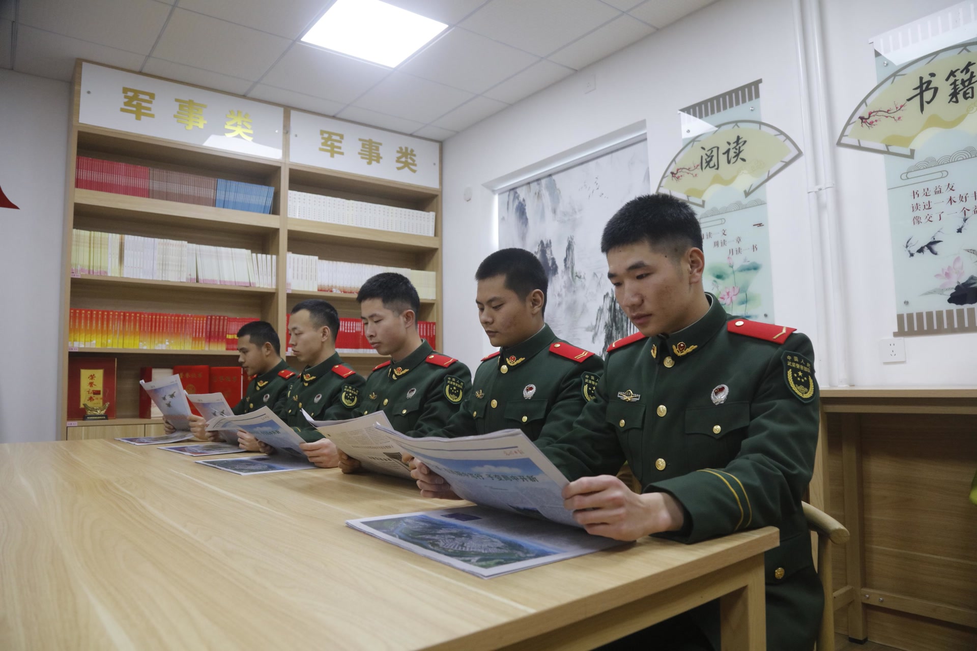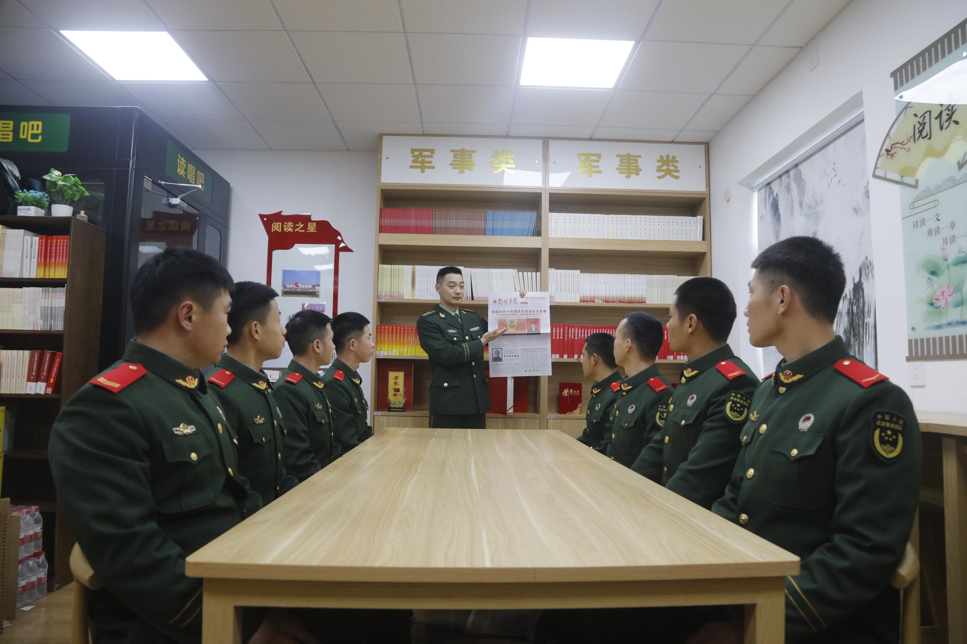 在学习现场,官兵们围坐在图书室里,认真研读报纸、聆听授课,围绕两会热点话题展开热烈讨论。干部骨干带头领学解读,帮助官兵准确把握会议核心要义,深刻理解新时代国防和军队建设的新要求。