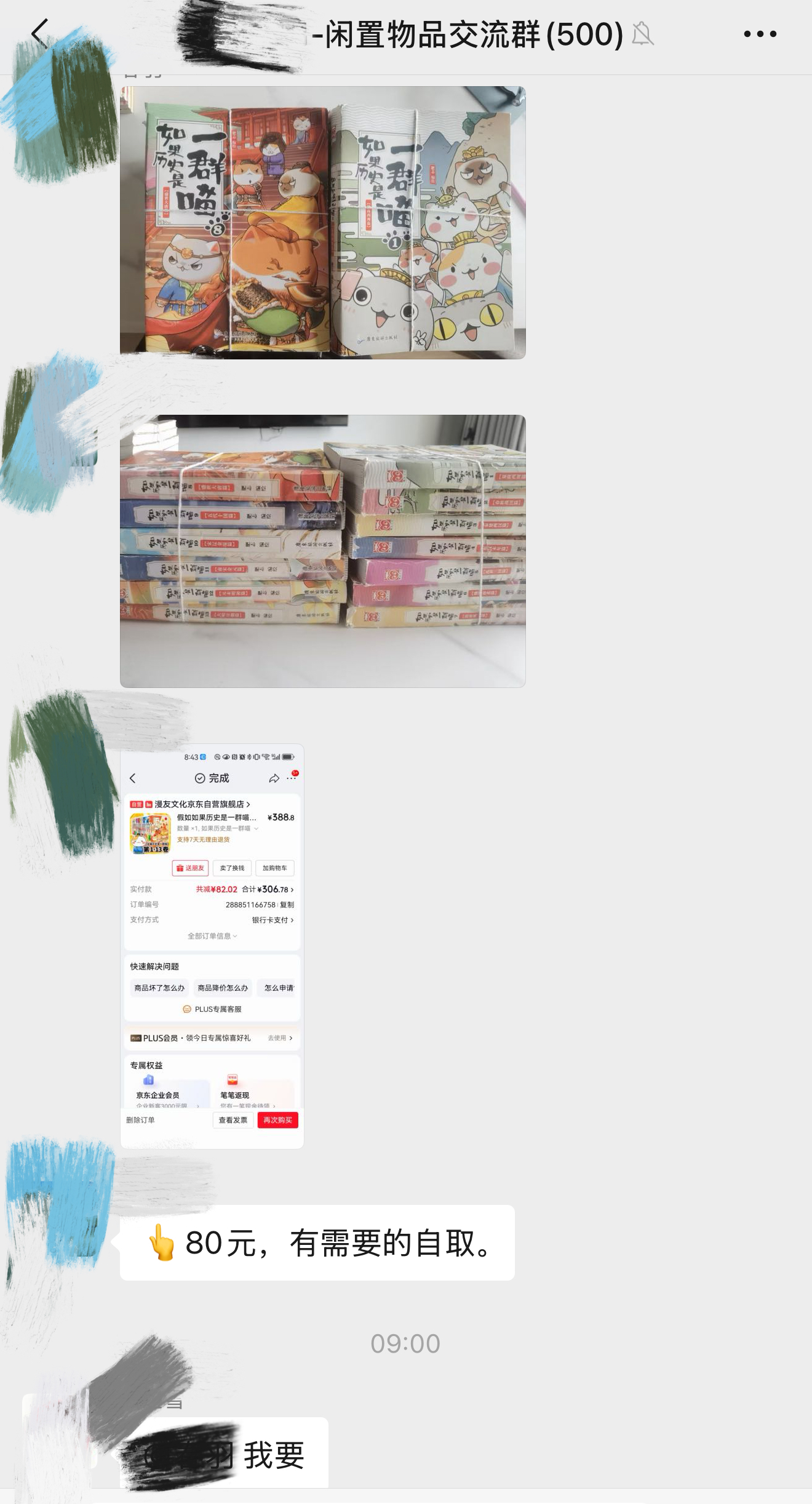 社区闲置群,成了不少家长处置童书的首选。刘女士所在的和悦华锦小区,有业主自建的闲置群,这成了小区家长们的“童书交易宝地”。“大家基本都是成套成套出,像‘小羊上山分级读物’‘如果历史是一群喵’这种畅销书,10元左右一套,在群里不到十分钟就被人订下。”刘女士说,精装硬皮书也只卖三五元一本,大家的核心诉求都是给家里腾地儿,只要能让童书发挥一点价值就满足。更重要的是,社区群交易都是上门自取,不用承担邮寄运费,也不用担心运输过程中书籍损坏,省心又便捷,远比闲鱼等线上平台效率高。