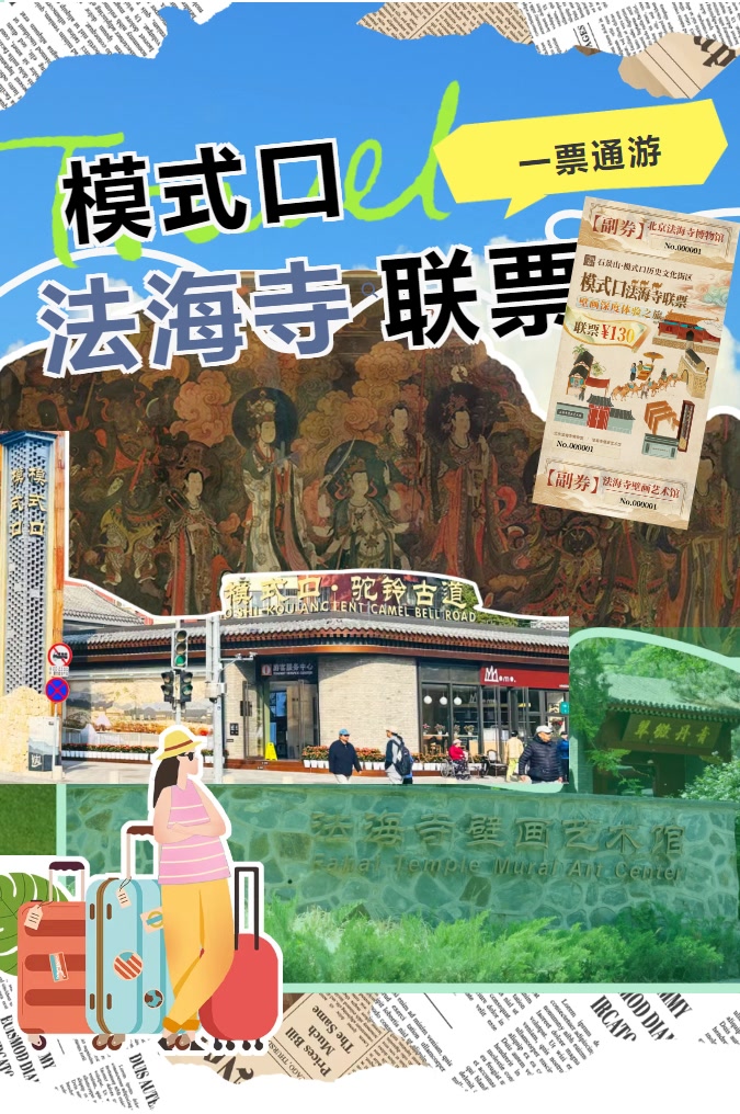模式口历史文化街区推出的“模式口法海寺联票”,通过整合文旅资源深化融合效应,为游客带来别样体验。这张联票紧密联结法海寺的珍贵壁画真迹与壁画艺术馆的创新数字化展示,让游客便捷深入地领略文化瑰宝的双重魅力;更以 “票根 +” 模式串联多元消费场景 —— 凭票可畅玩承恩寺、石景山区石刻博物馆等景点,还能在街区餐饮、文创商户享受专属折扣,实现文化体验与休闲消费的无缝衔接,轻松解锁新体验。