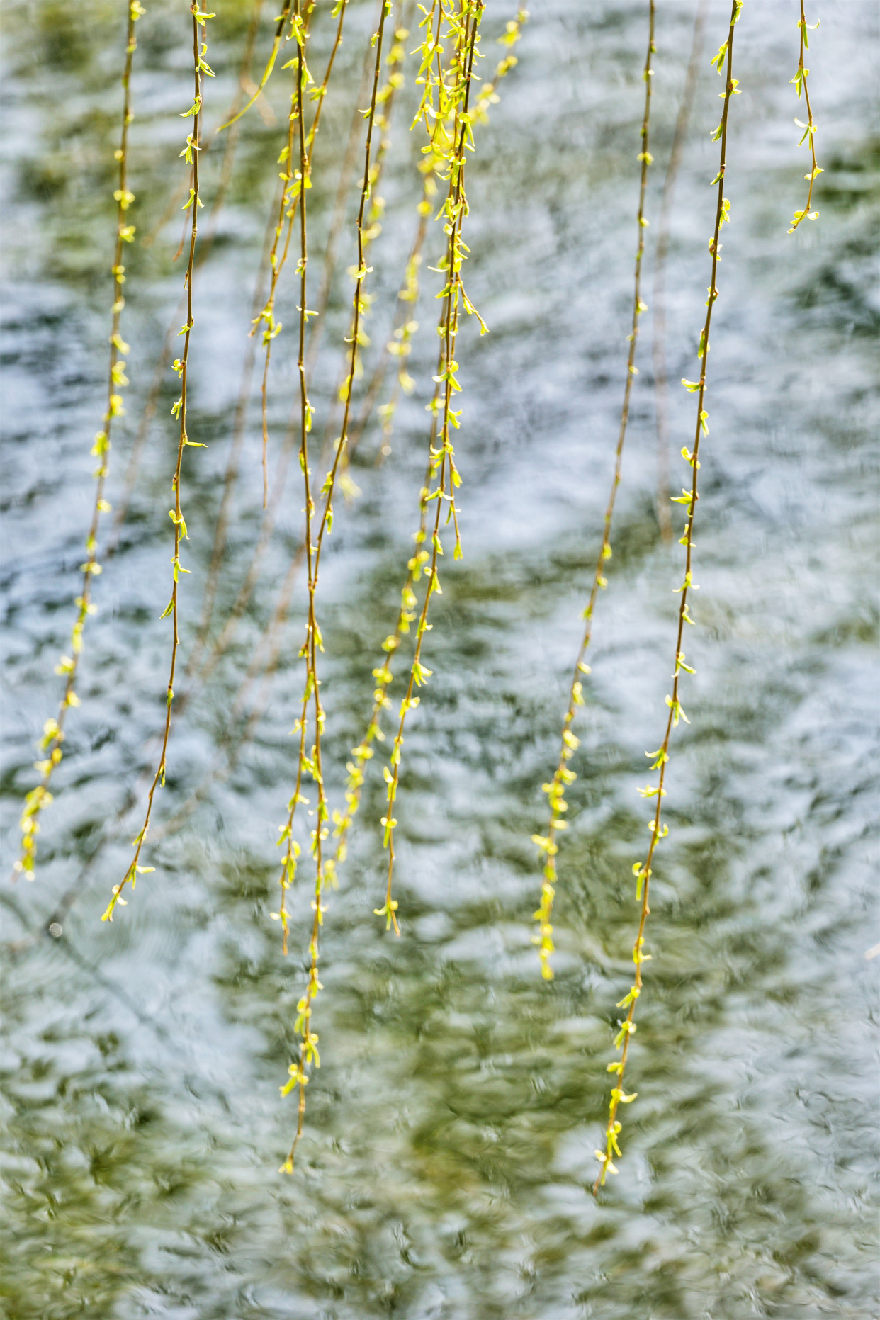 岸边垂柳正抽新芽,鹅黄嫩蕊缀满细枝,柔条拂水,在风里荡起千重绿烟。