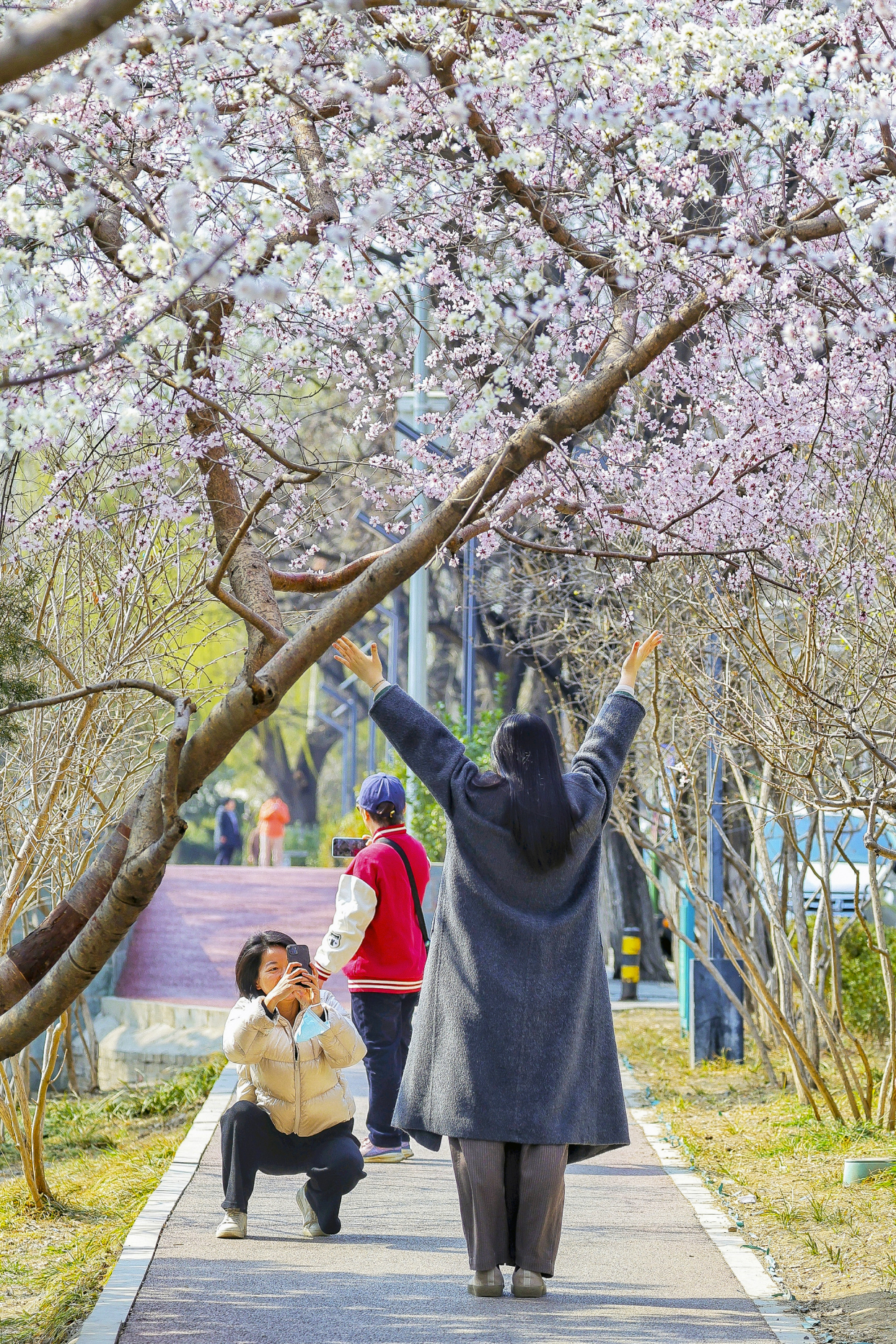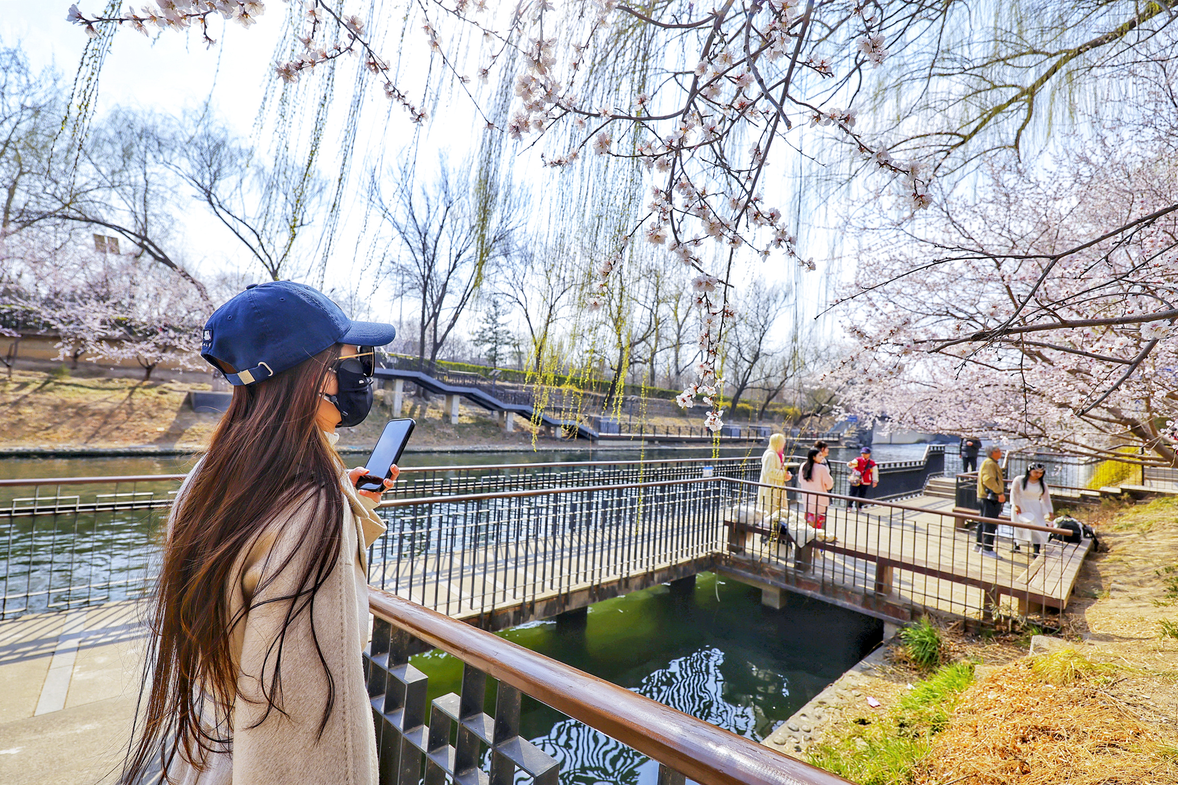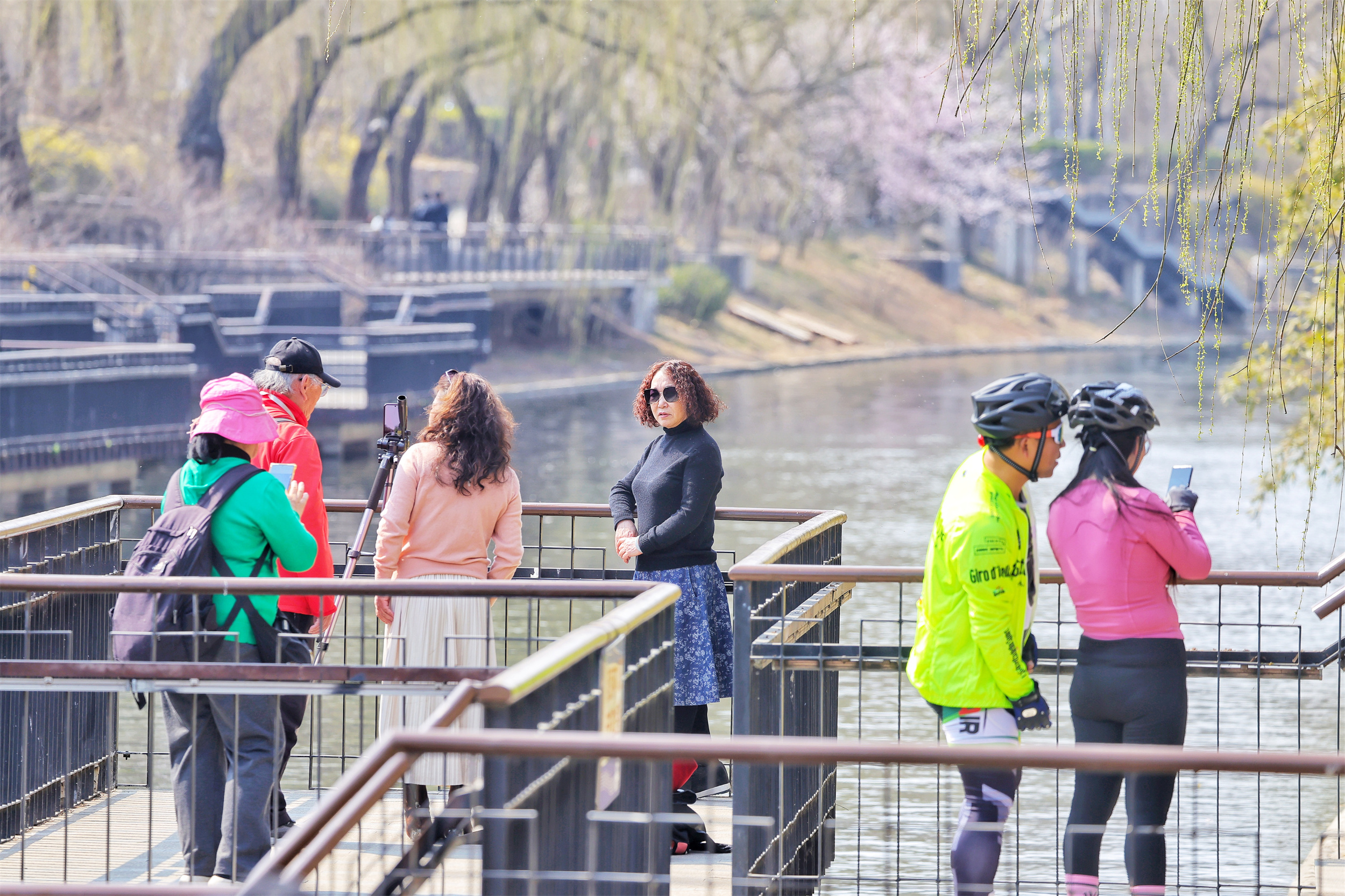 游人或缓步慢行,用镜头定格花影流水;或倚栏闲谈,任春风拂面。一步一景间,满眼春色皆入画。