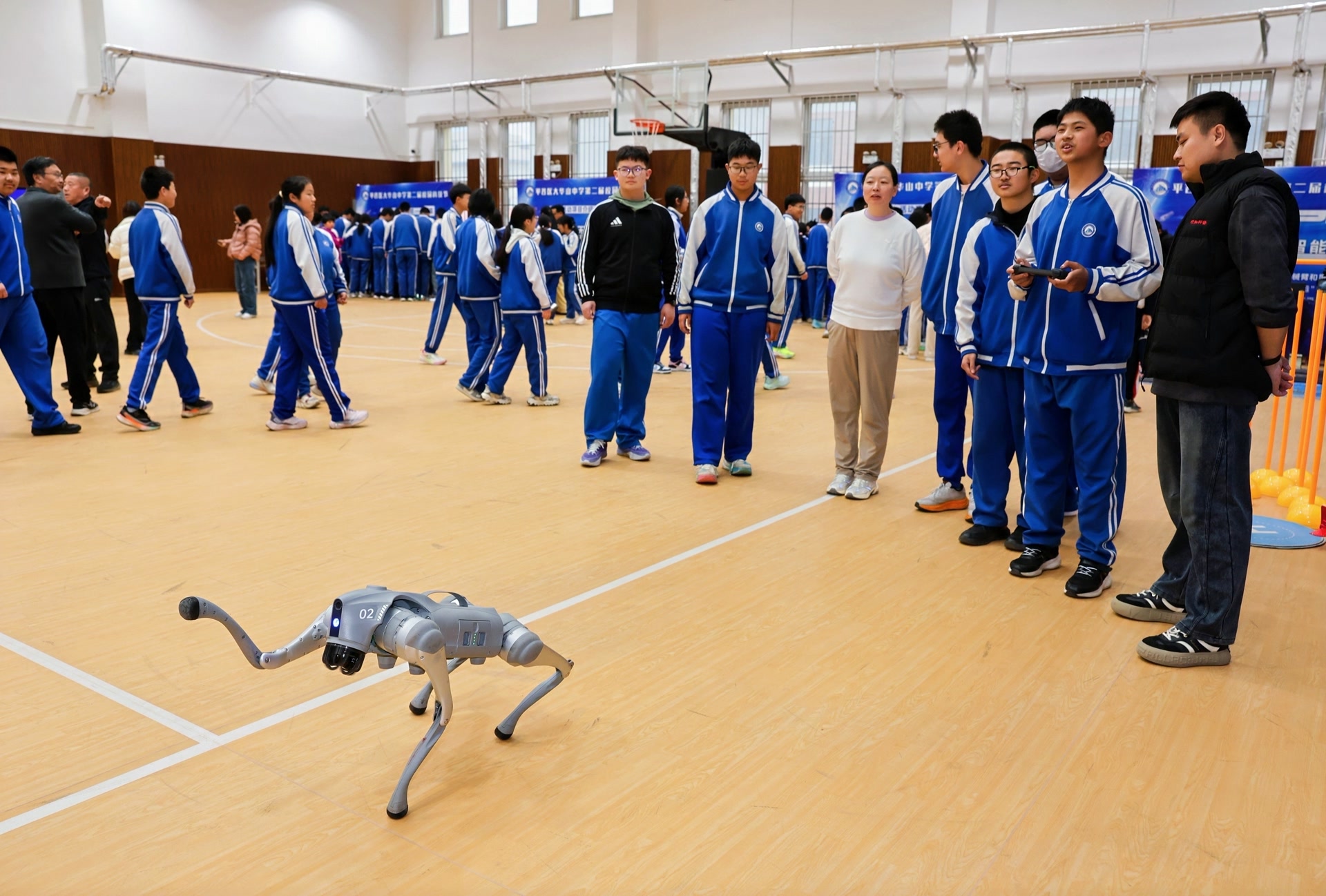 活动开幕式由学生与机器人“小华”共同主持。“小华”灵活的身姿、智能的感知系统让学生们大开眼界。从“中国天眼”模型到灵巧的机器狗,从考验专注力的意念赛车到充满创意的科技作品……在体验区,孩子们动手感受科技魅力。