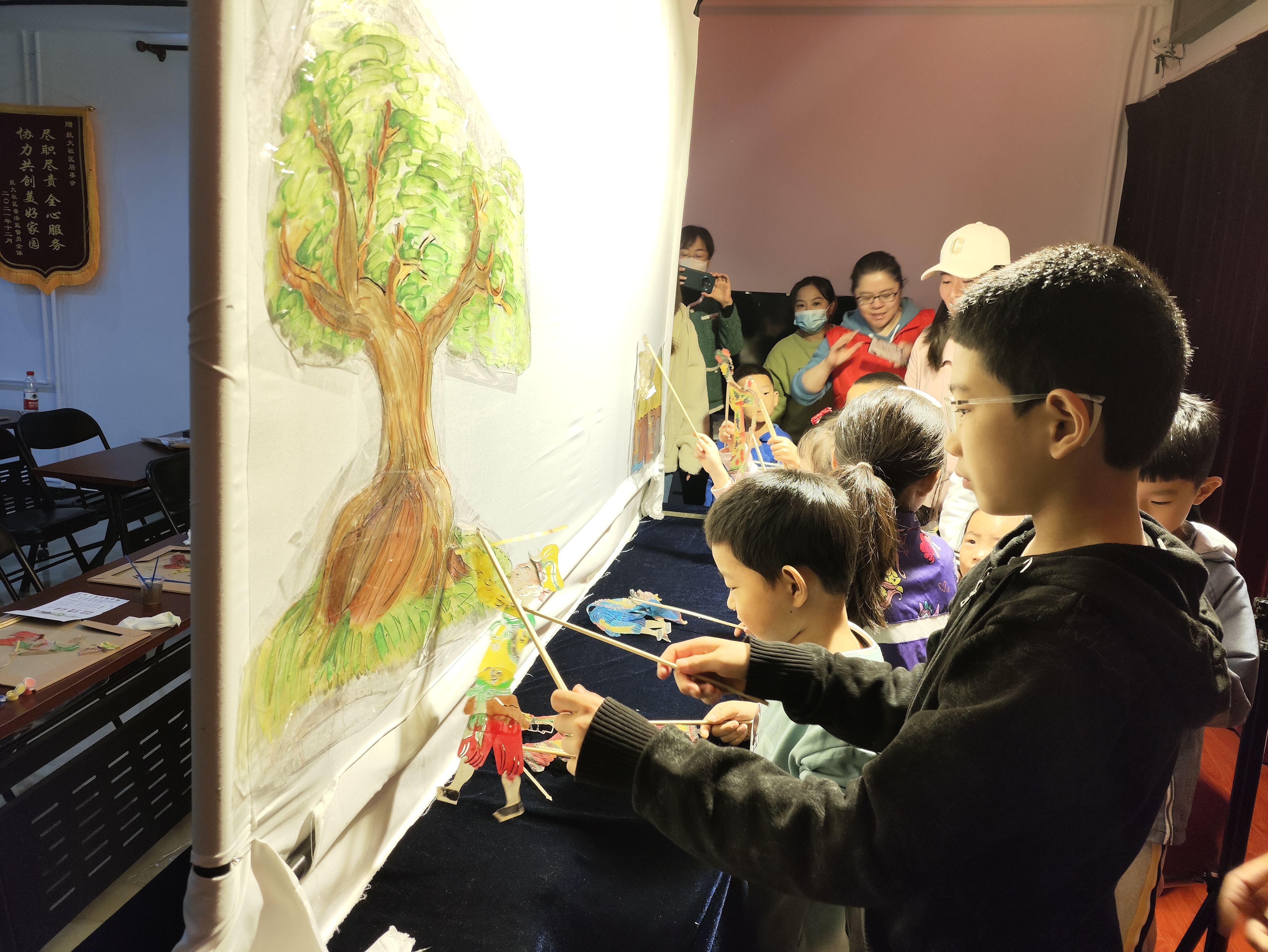 “基地除了开展一些阅读活动外,还会举办一些传统文化非遗类活动,在这期间我们接触到了皮影,就带领员工一起研究,自己花钱买材料、制作、编剧本、配音等进行创作。我们根据经典故事或书籍的精彩桥段编排剧本,创作了适合皮影戏演出的故事。”寇春雨说。