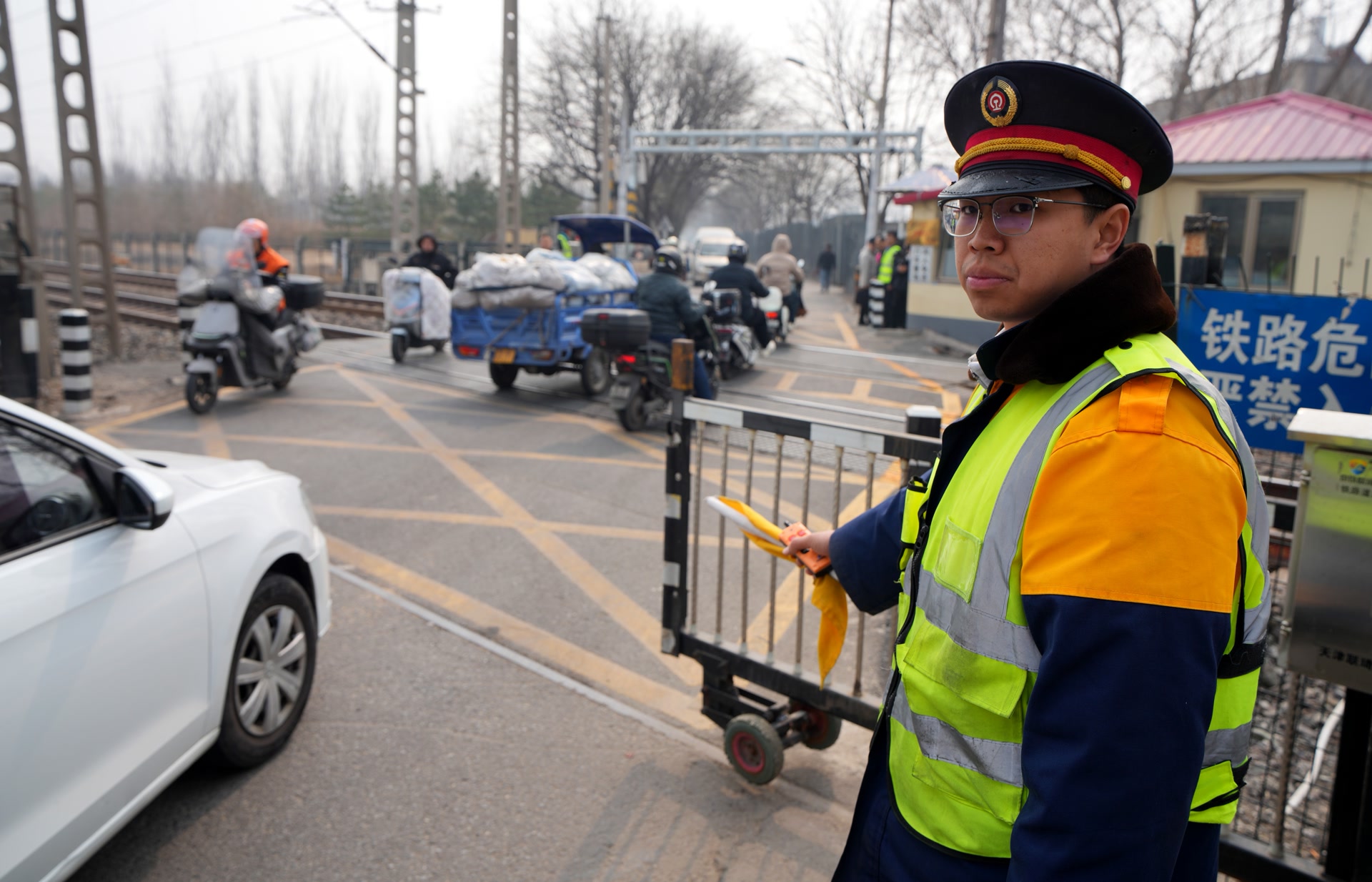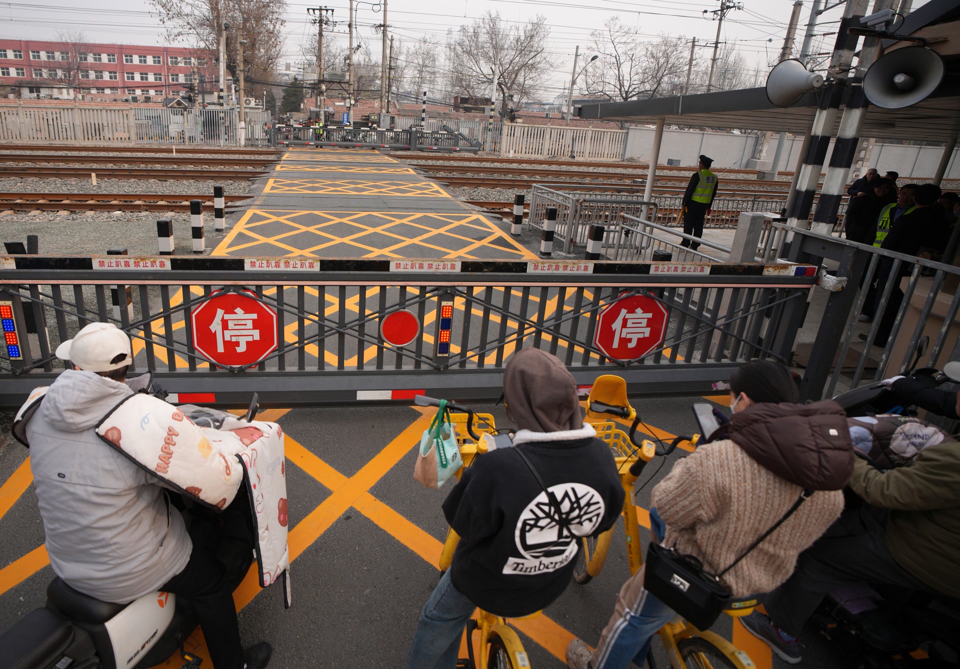 栏门抬起,门后等待的车辆与行人有序通过铁轨与铺面;栏门落下,火车沿着铁轨疾驰奔向远方……在北京,铁路与公路交汇的道口处,类似的开关设置搭建起一条条“通行桥”,既能发挥铁路的运输作用,也保障了群众安全出行。