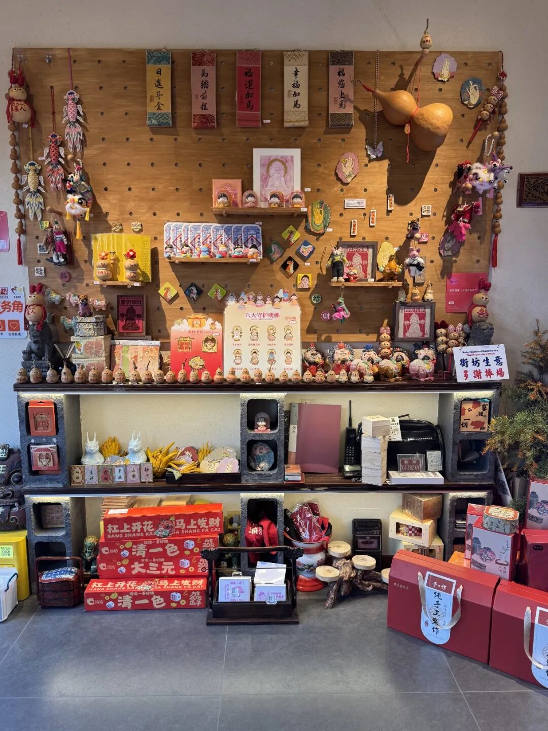 一家咖啡店,可以提供给顾客什么?不妨亲身来体验。推开店门,一场胡同与潮流的相遇就此展开。左手边的主题墙与置物架上,象征“福禄”的葫芦挂件、Q版神仙玩偶、迷你石狮子手作、马年主题冰箱贴错落摆放,老北京胡同文化、传统民俗、国潮文创与咖啡香、萌系设计巧妙相融,细节满满、创意十足。