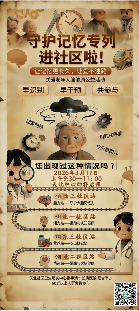 近日,“认识脑海中的‘橡皮擦’·守护记忆专列行动”认知健康科普活动在天通苑北社区卫生服务中心举行。活动现场,医务人员为社区老年居民提供认知功能筛查、科普宣讲及认知锻炼互动服务。3月至9月,该活动将在天北社区及周边地区开展6场巡回服务,推动老年认知健康问题的早发现、早干预。