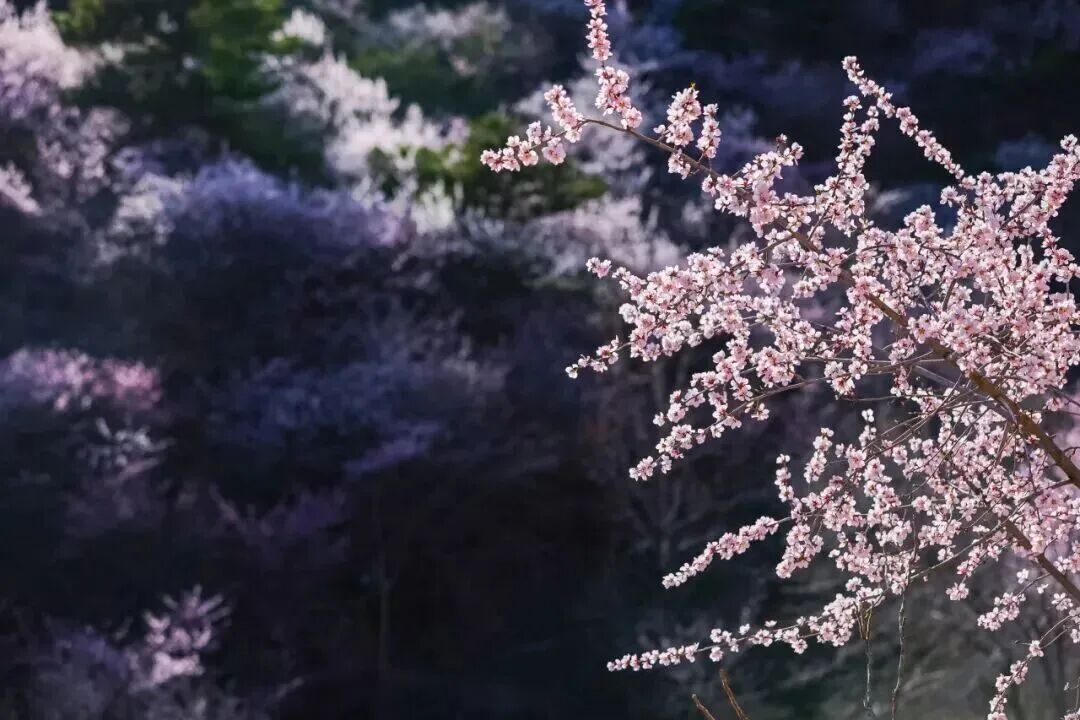 褪去冬日的黑白水墨,延寿的春天是新砚台磨出的第一抹彩墨,桃花的粉是“新妆”,山峦的青是“新色”,这是3月中旬至4月初的限定色号。