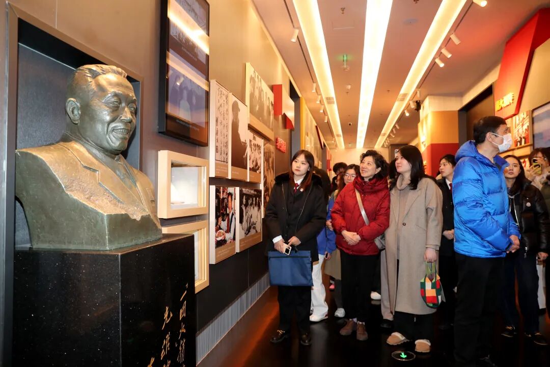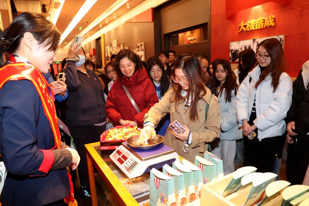 体察队伍首先走进张秉贵纪念馆。在讲解员的引导下,参与者们透过老照片和实物展陈,了解学习张秉贵的“一团火”服务精神。几位高校学生还在工作人员指导下尝试了“一抓准”技艺。他们用手掂量糖果重量,虽然屡屡失手,但对这项非遗技艺背后的“工匠精神”有了直观体会。“今天亲手试了才知道,那不是简单的熟练,是几十年如一日的专注。”一名参与体验的学生说。