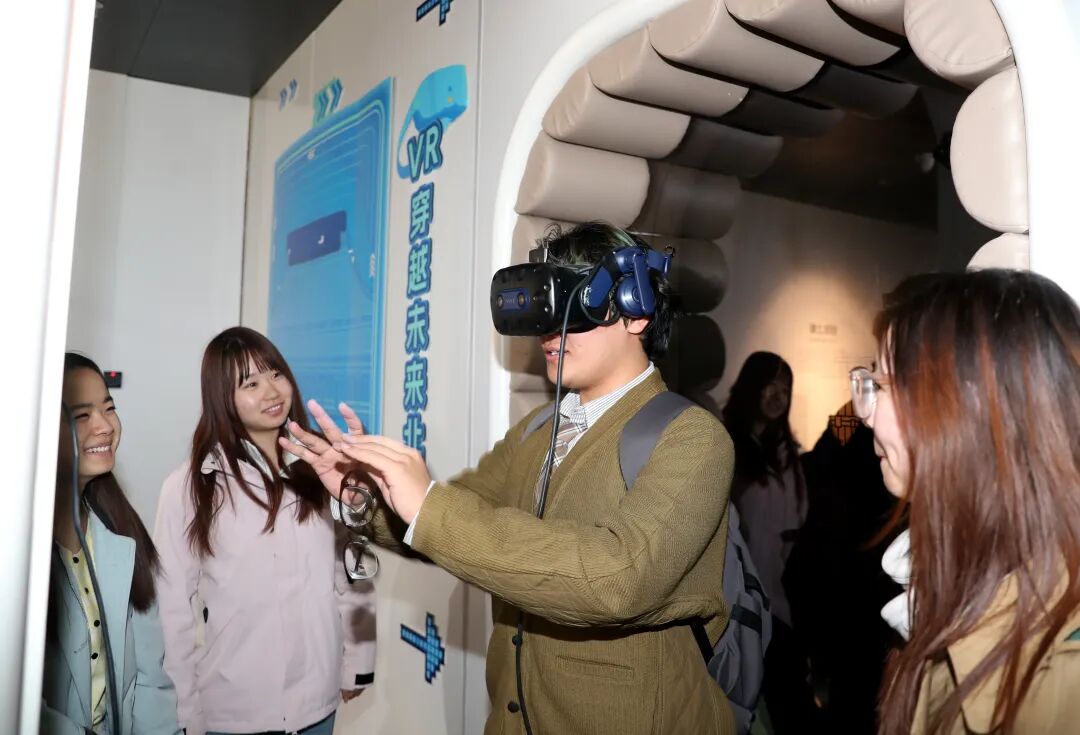 青年消费者在艺云数字艺术中心体验VR(虚拟现实)技术。
