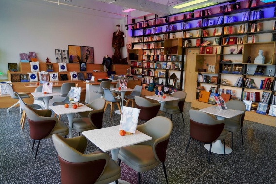 简约时尚的装修融入北服设计元素,醇香咖啡搭配文创周边,营造出舒适的社交氛围。这里不仅是咖啡厅和阅读角,更是师生的“课余第二客厅”和市民城市会客厅。