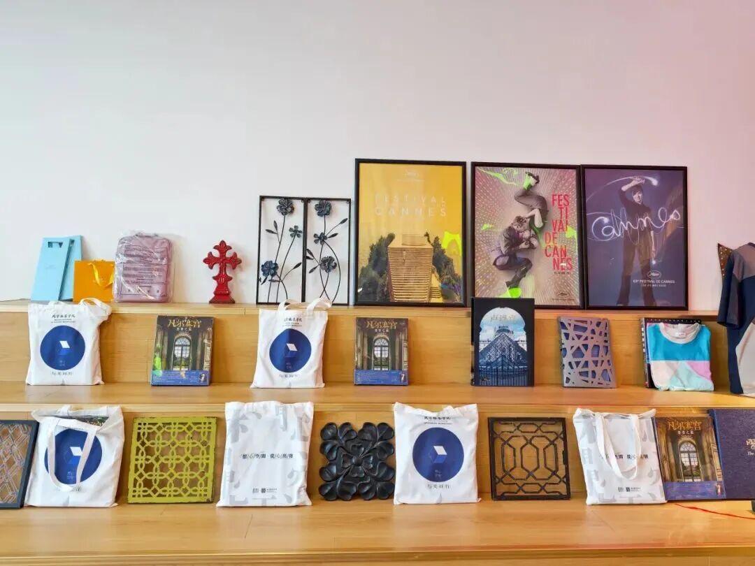 店内还设有专属展示区,陈列着北服学子的原创作品。有设计感十足的服饰、创意满满的环保袋,更有将时尚与传统相融的非遗彩灯、木雕等匠心之作。