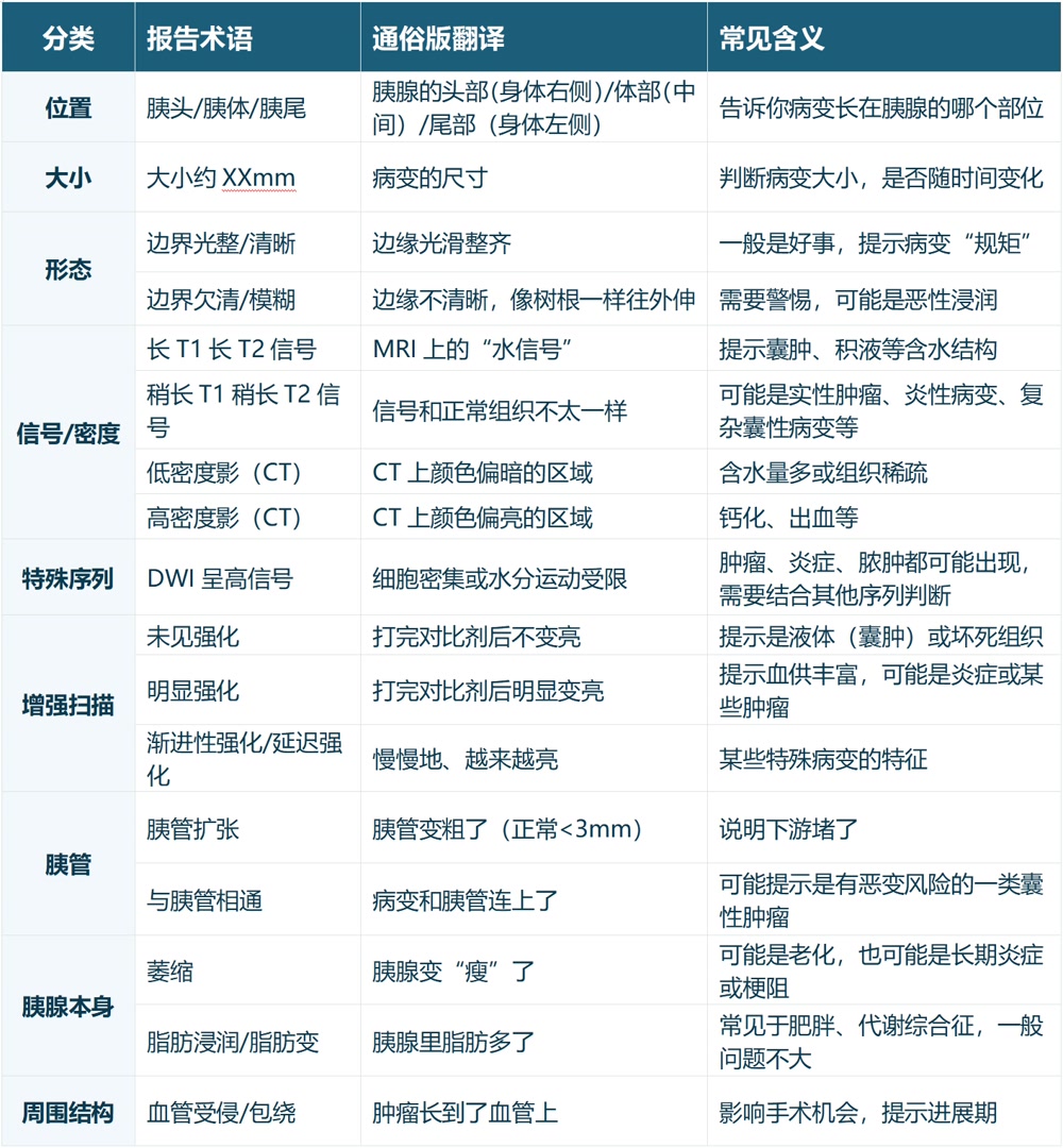 “长T1长T2信号”“边界光整”“胰管扩张”……这些专业术语看得人直发懵,今天我们就用三个胰腺影像报告真实案例,帮你看懂报告单。