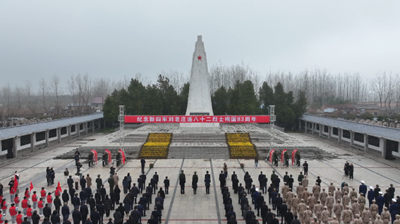 新四军刘老庄连纪念园内庄严肃穆,八十二烈士殉国83周年公祭仪式如期举行。军地各界代表肃立纪念碑下,以庄重之礼缅怀先烈忠魂。