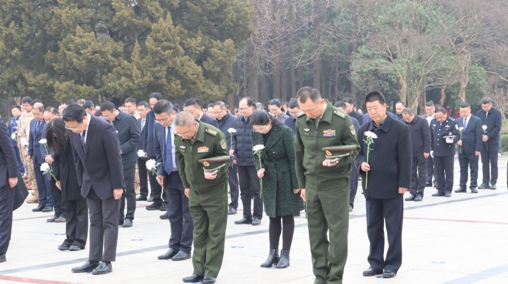 ↑全体人员向先烈默哀。崔帅宇 摄